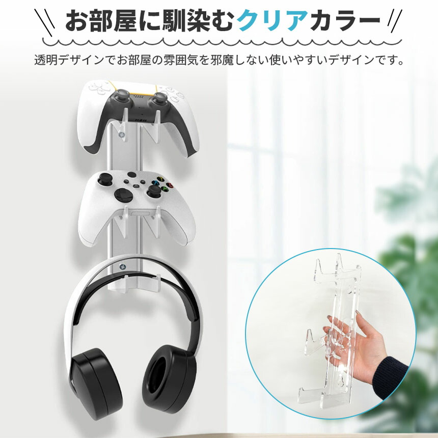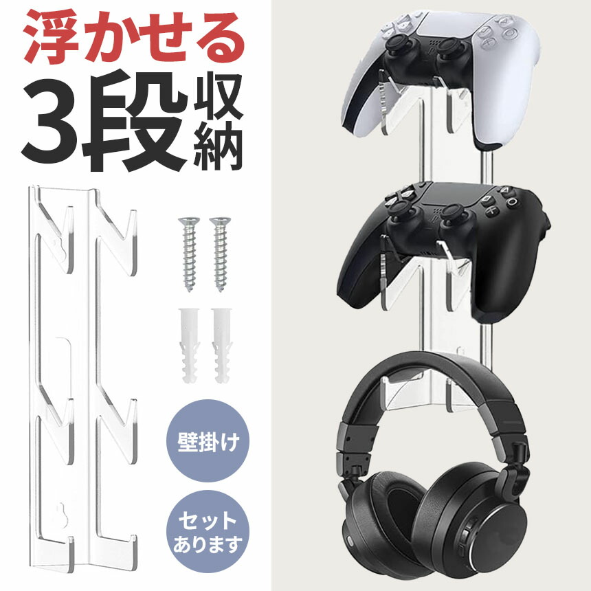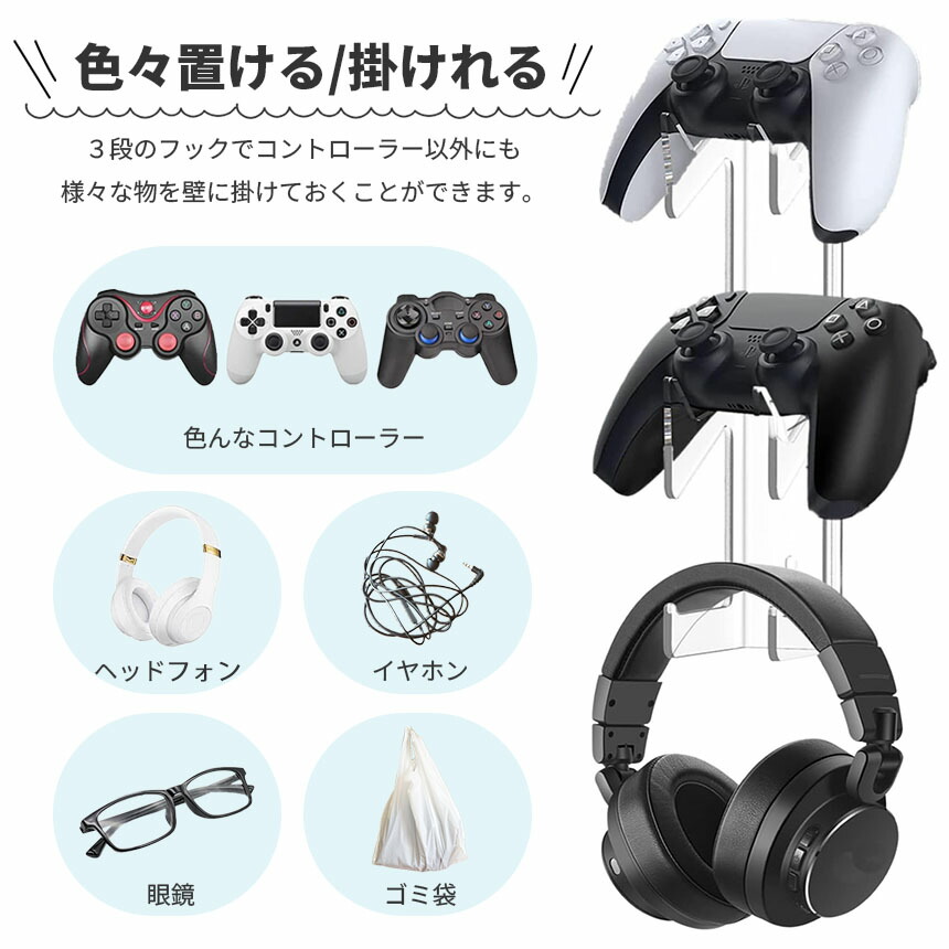 コントローラー収納 クリアカラー 収納ラック 収納フック 収納スタンド コントローラー 3段 ゲーム機 ヘッドホン ヘッドフォン 壁掛け 壁かけ 壁 ゲームラック PS5 PS4 Switc ホルダー