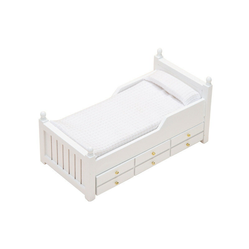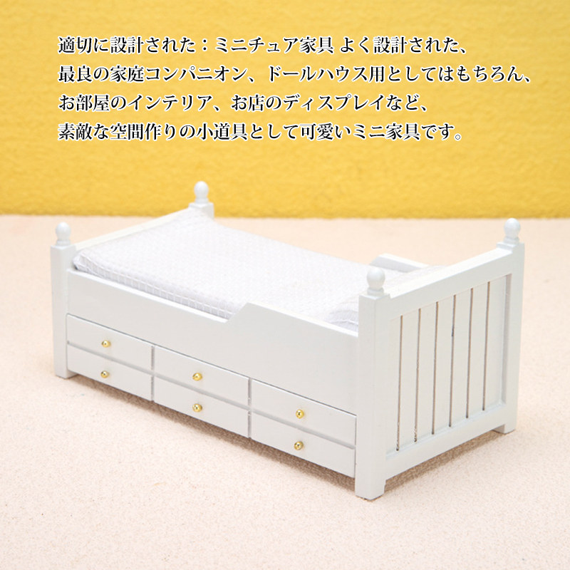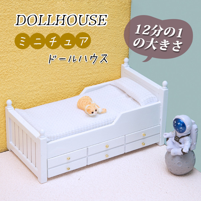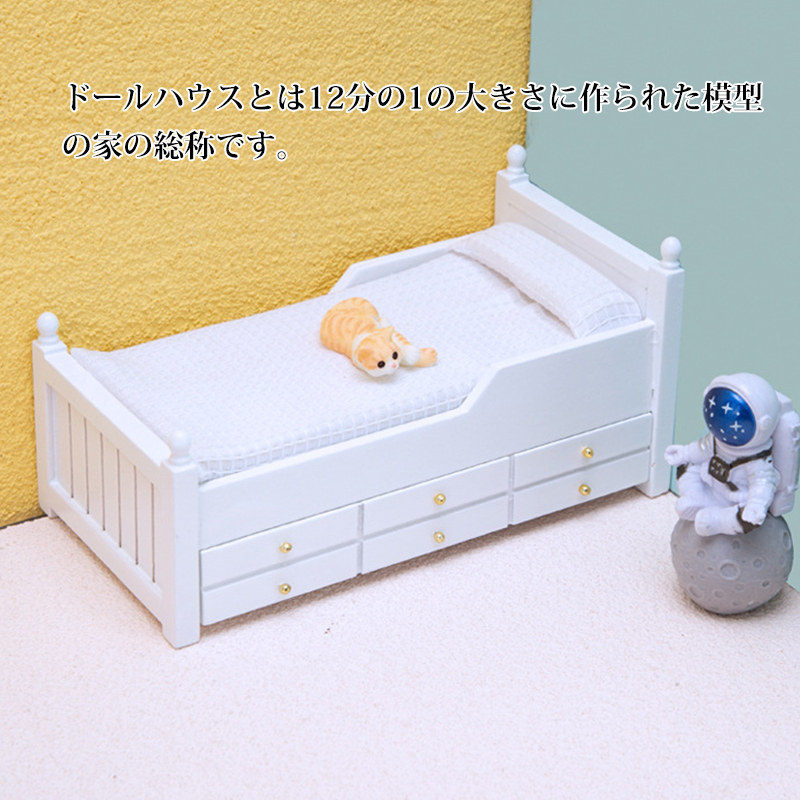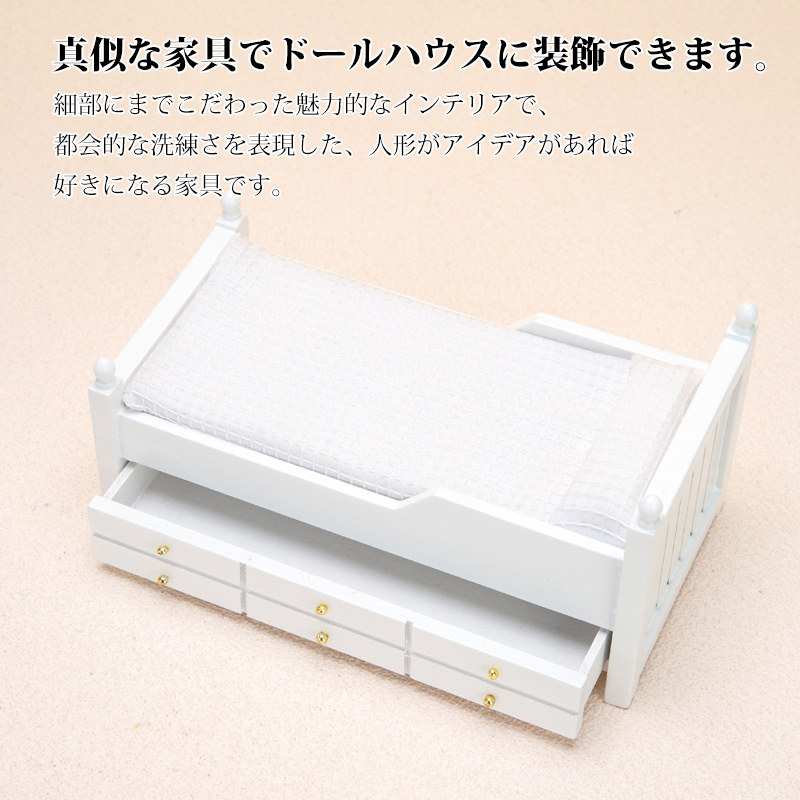 12分の1 ドール用 ミニベッド ホワイト ミニチュア 引き出し付き 木製 OB11 BJDドール用 ベッド DOLLHOUSE おしゃれ かわいい