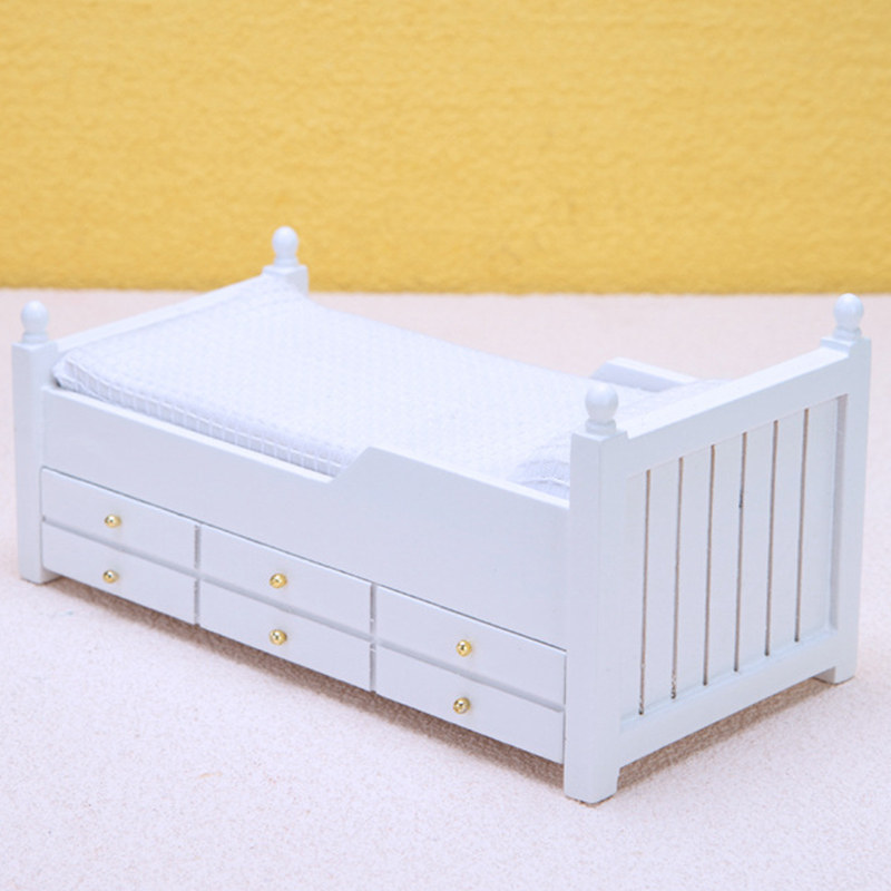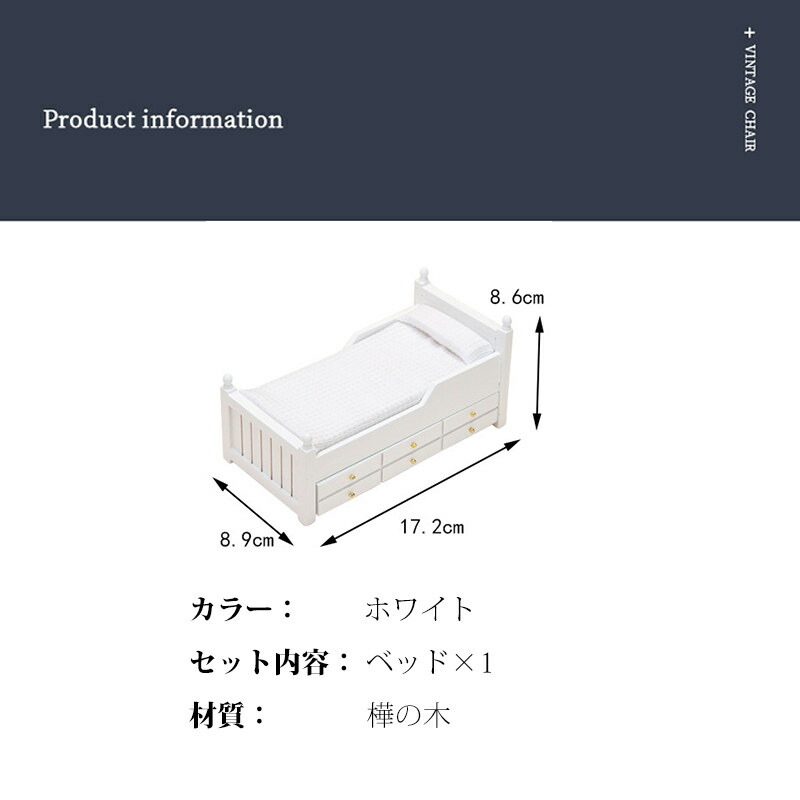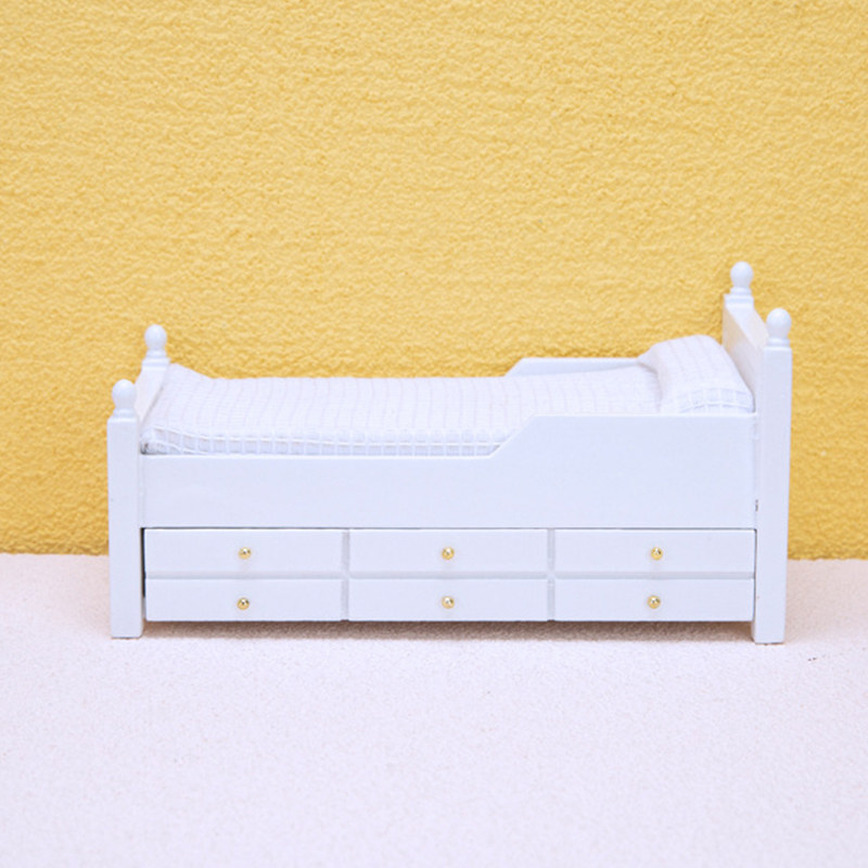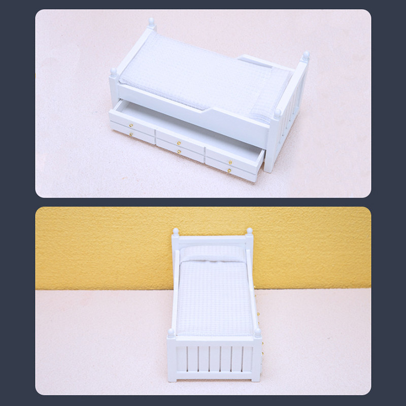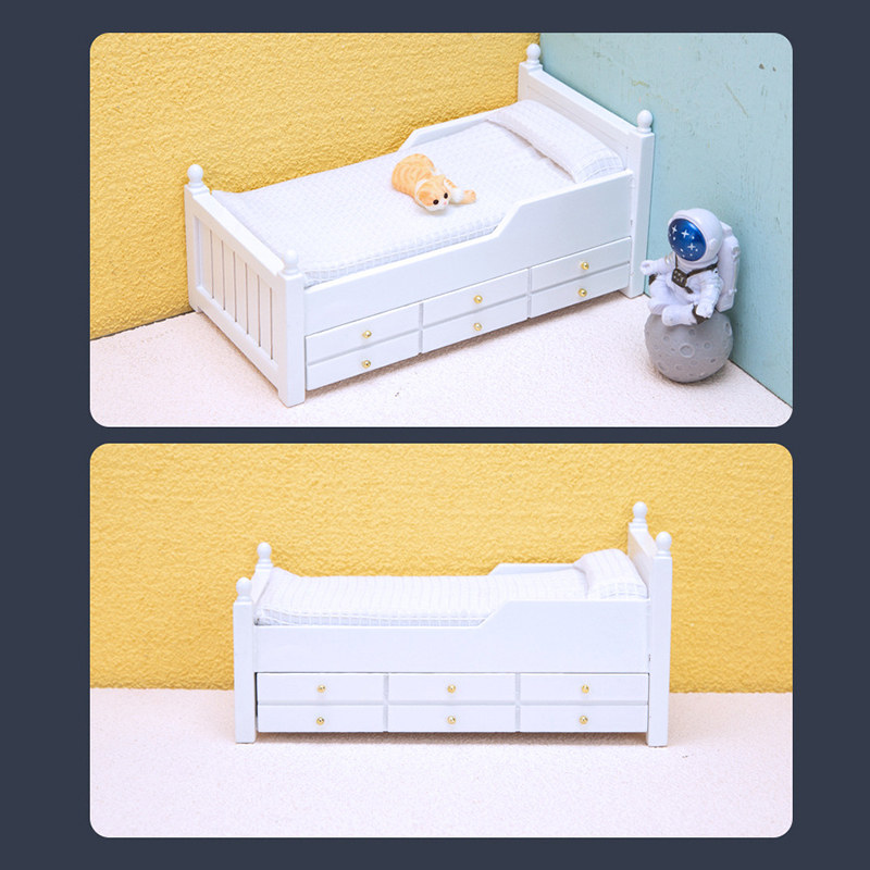 12分の1 ドール用 ミニベッド ホワイト ミニチュア 引き出し付き 木製 OB11 BJDドール用 ベッド DOLLHOUSE おしゃれ かわいい