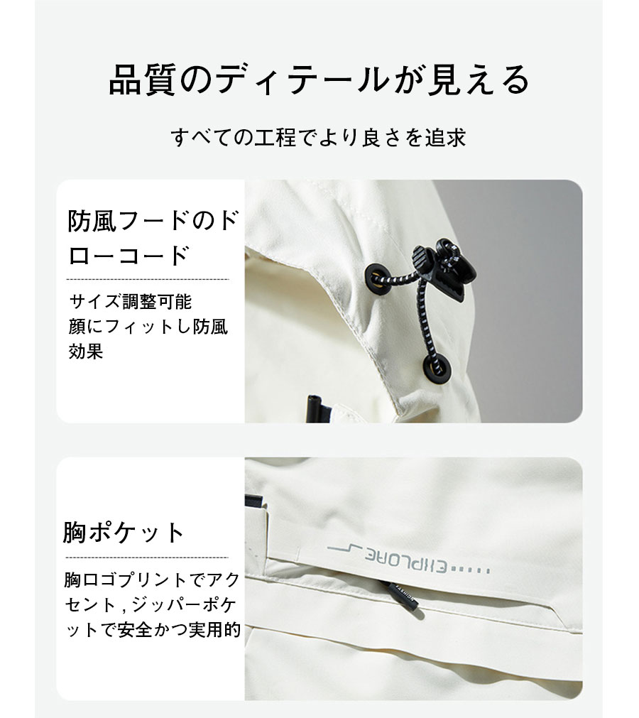 アウトドアジャケット 登山ウェア 登山 釣り 服 メンズ レディース 防風 防寒 撥水加工 マウンテンパーカー コート パーカー ジャケット レインジャケット アウトドア キャンプ トレッキング 突撃服 野外服 スポーツウェア 配色 おしゃれ