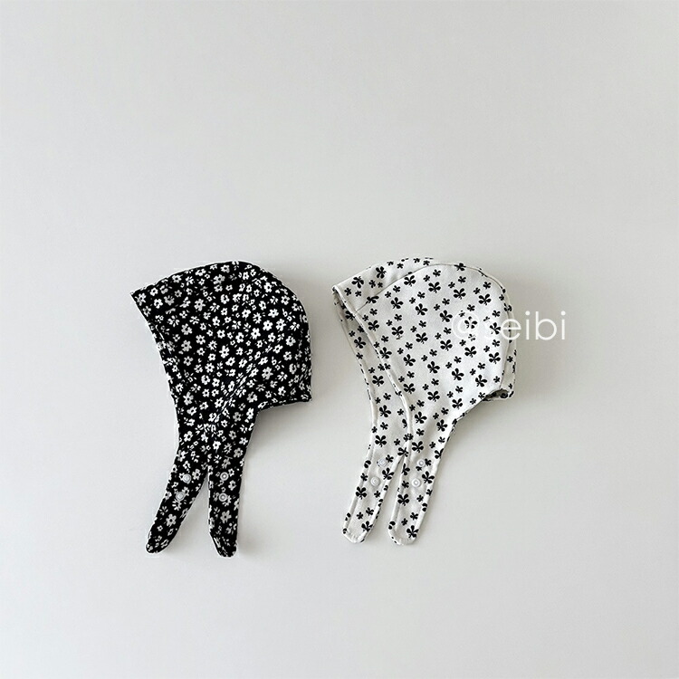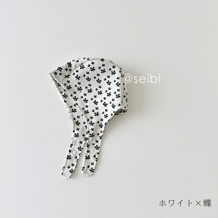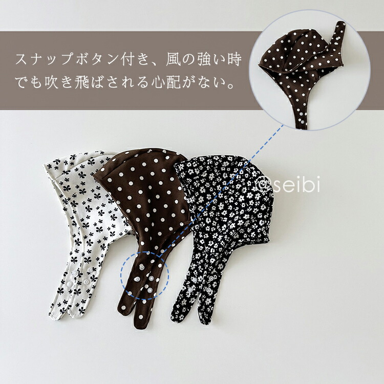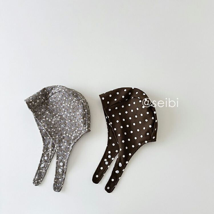 ベビー 帽子 ボンネット 北欧 水玉 キッズ ベビー マタニティ 早い者勝ち コーヒー水玉 ホワイト蝶 ブラック花柄 カーキ花柄