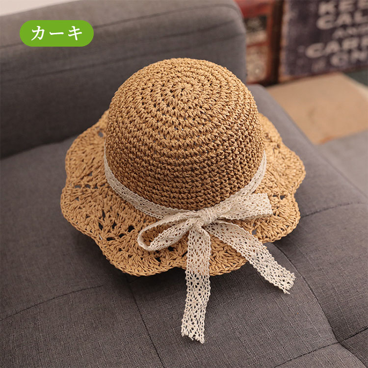 麦わら帽子 キッズ ガールズ 女の子 キッズ ベビー マタニティ 新作 カーキ ピンク ベージュ S(約46-48cm) M(約48-52cm)
