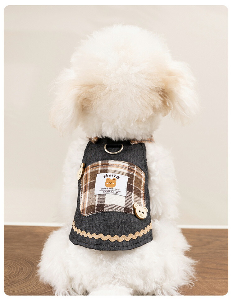 小型犬 中型犬 ハーネス 犬服 デニム サロペット 可愛い ドッグウェア SNS映え キャットウェア 猫 春夏 ペット服 オーバーオール 着脱簡単 引っ張り防止 Dカン付き お散歩 お出かけ おしゃれ