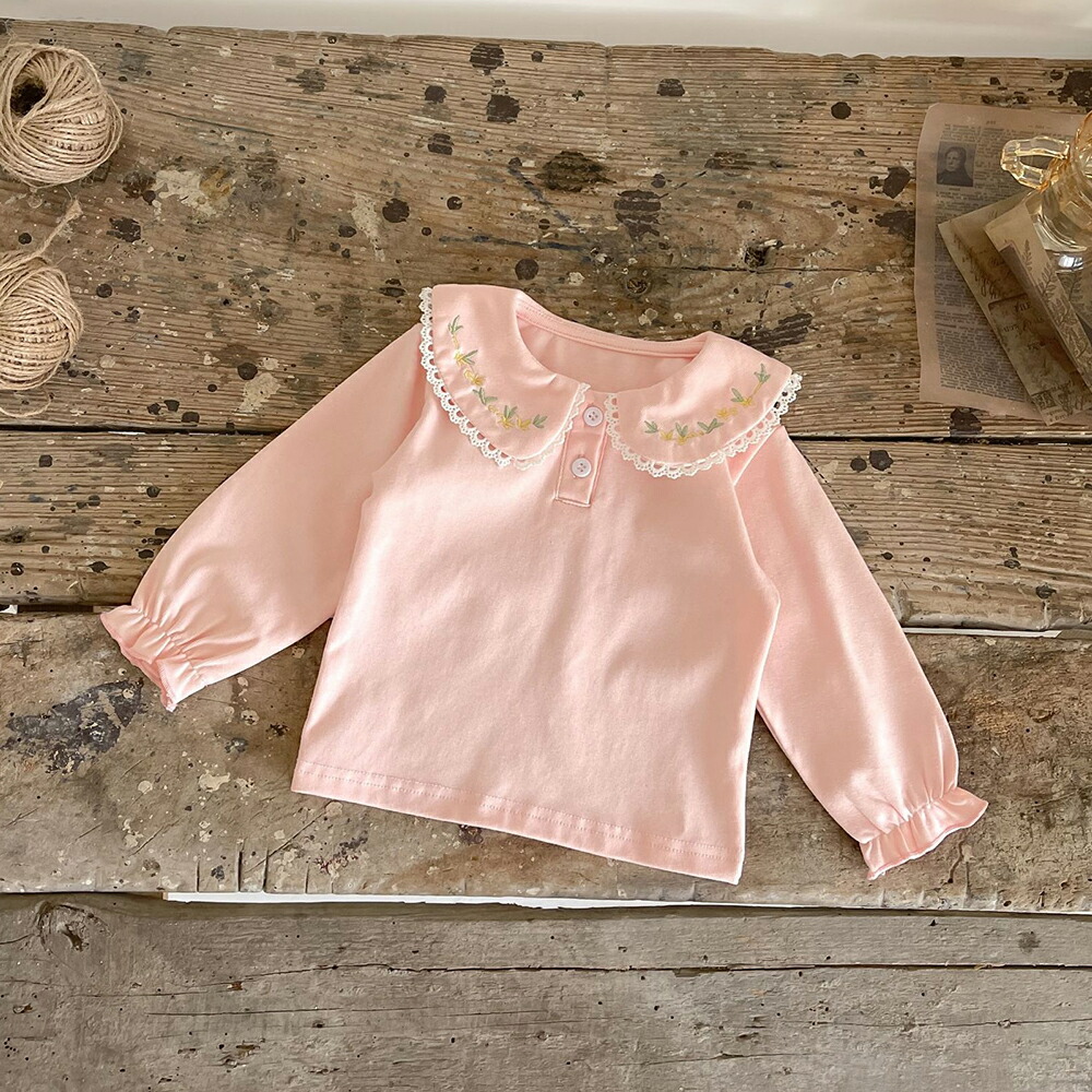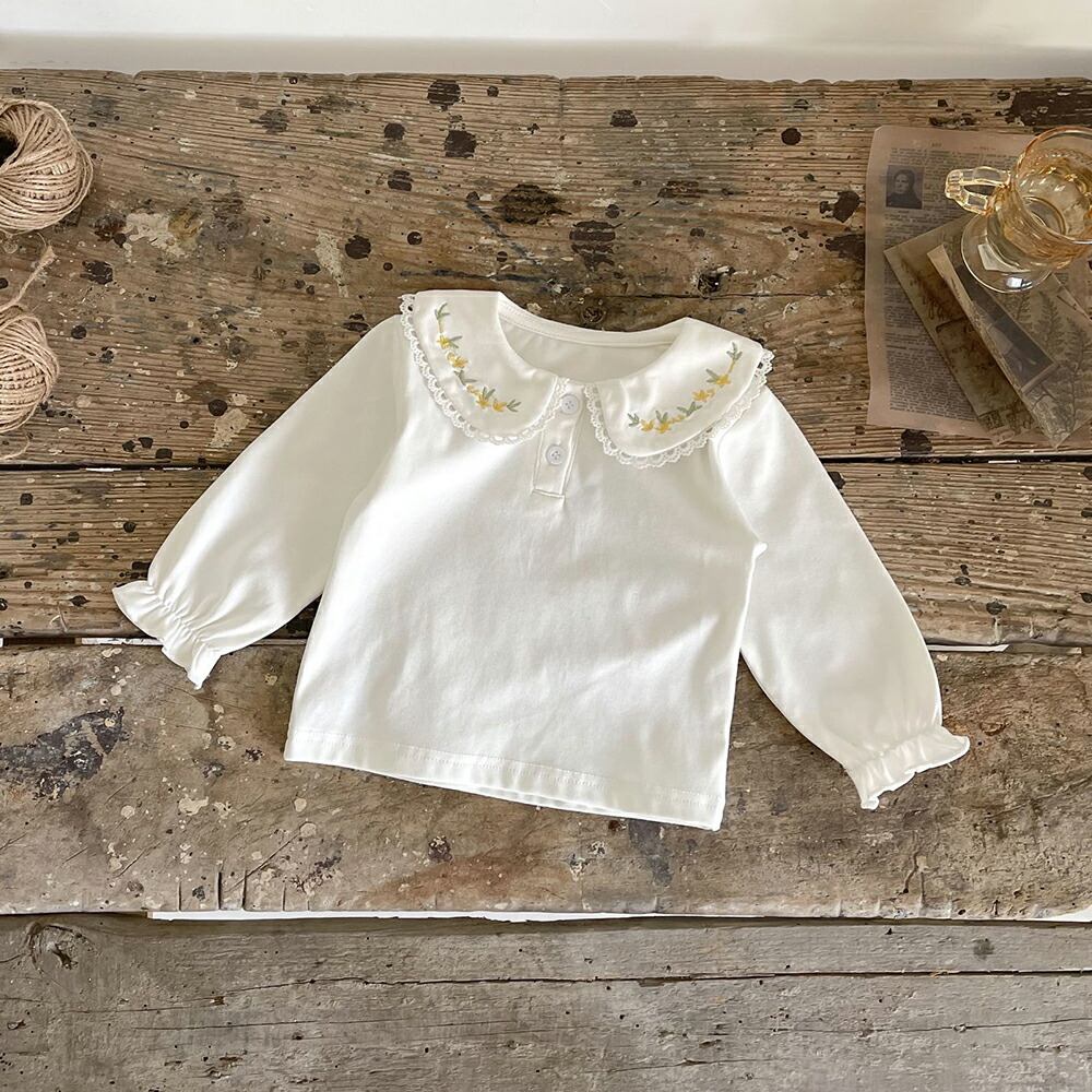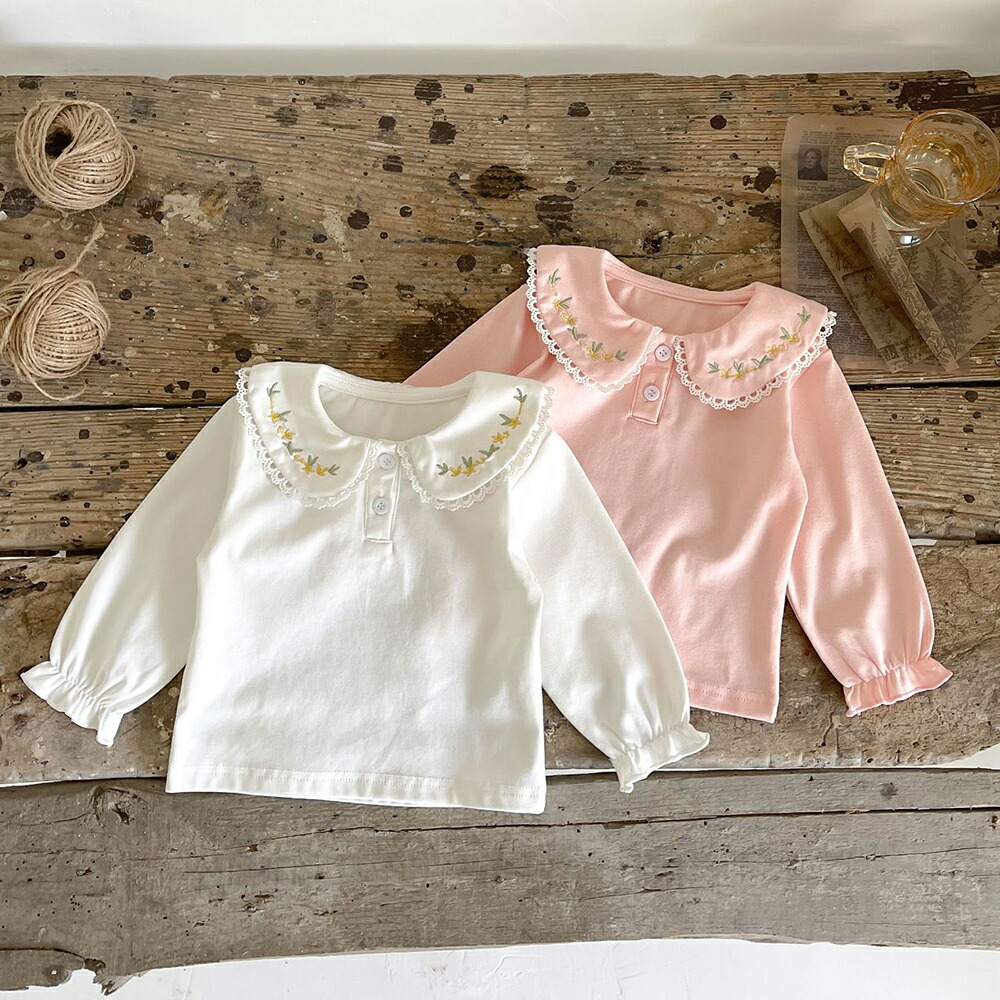 ブラウス キッズ ベビー服 トップス インナー シャツ 無地 長袖 刺繍 レース襟 フリル フォーマル 子供用シャツ 卒園式 卒業式 入園式 入学式 発表会 結婚式 通園 かわいい シンプル お出かけ