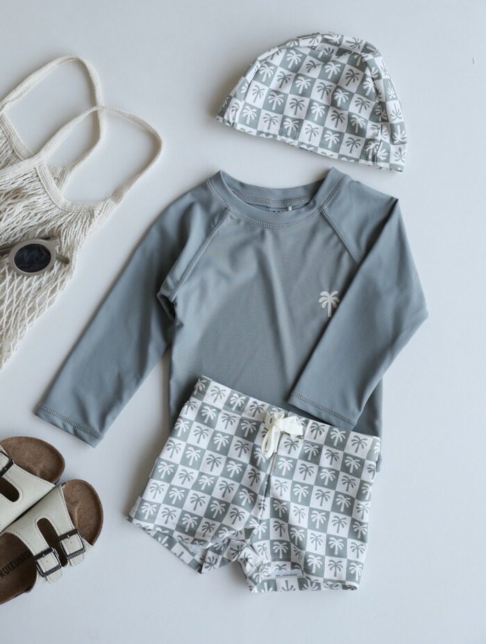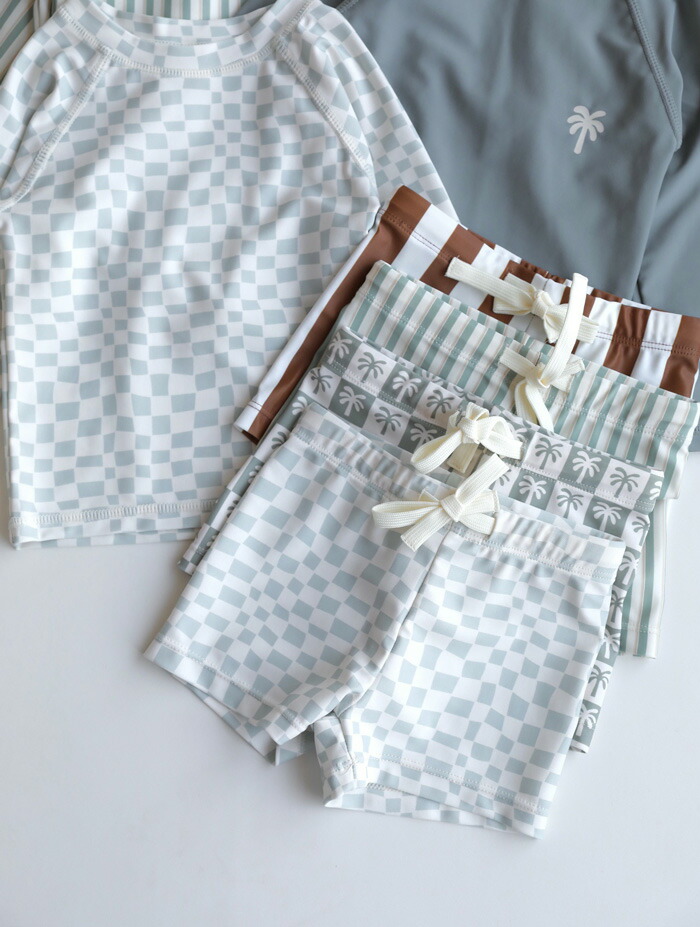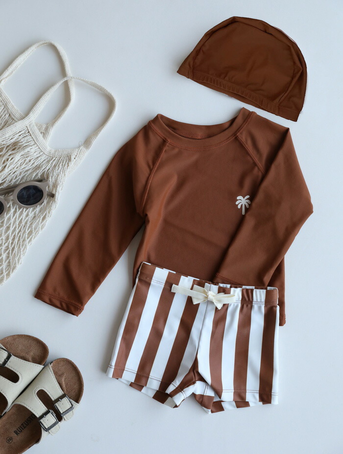 キッズ 水着 男の子 セパレート ラッ ベビー ベビー服 ファッション 水着 豊富な品揃え ストライプ チェック柄 ココヤシ ブラウン 80cm 90cm 100cm 110cm 120cm 130cm