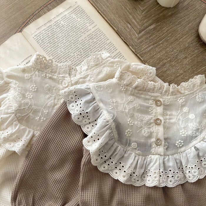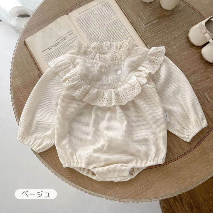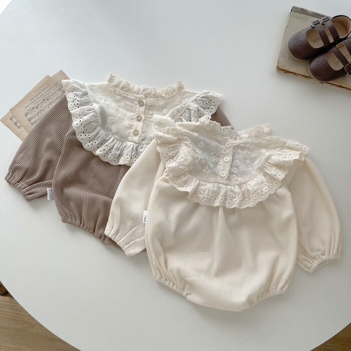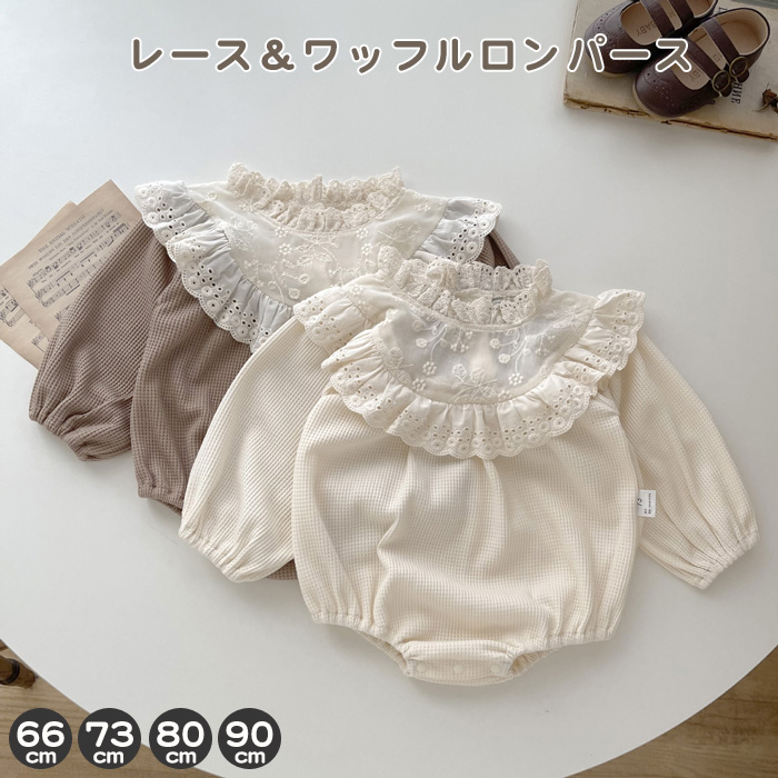 ベビー服 長袖 ロンパース レースワッフルロンパース キッズ ベビー 赤ちゃん レース襟 カバーオール 新生児 女の子 子ども フォーマル 七五三 お宮参り 服 出産祝い プレ お食い初め