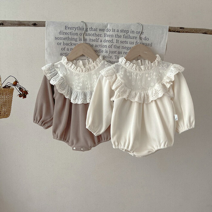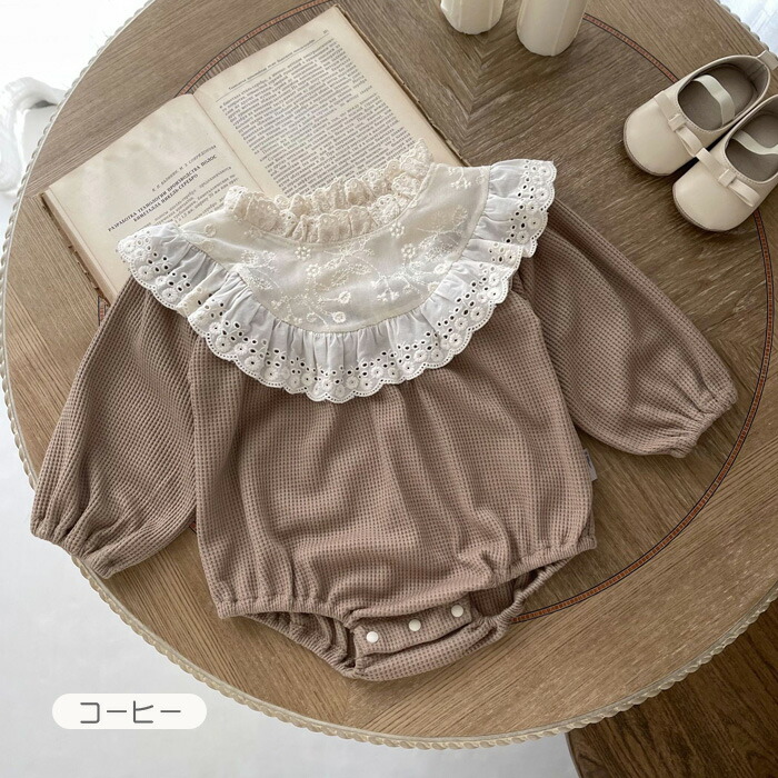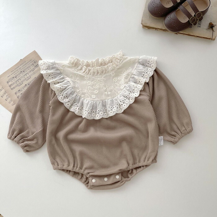 ベビー服 長袖 ロンパース レースワッ ベビー ベビー服 ファッション カバーオール ロンパース 通販 ベージュ コーヒー 66cm 73cm 80cm 90cm
