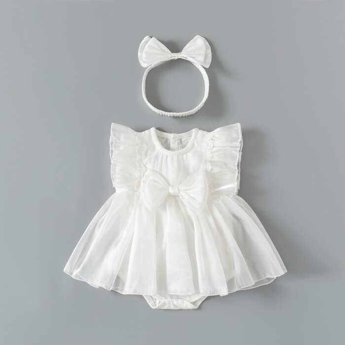 セレモニードレス 女の子 ベビードレス 夏 ベビー服 サマーセレモニードレス&ヘアバンド セット ベビーウェア 赤ちゃん 出産祝い 新生児 お宮参り 退院 かわいい 上品 誕生日 結婚式 プ おしゃれ