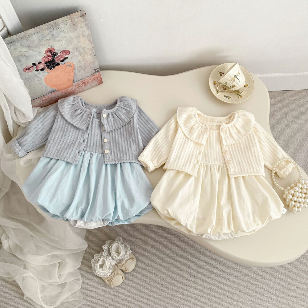 ベビー服 セレモニードレス 女の子 フォーマル ワンピース風ロンパース カーディガン バルーンスカート 2点セット 入園式 キッズ ベビー 出産祝い 退院着 韓国 女 赤ちゃんドレス ベビード 子供服