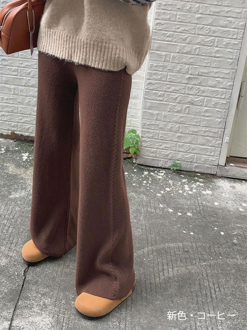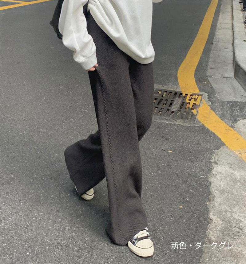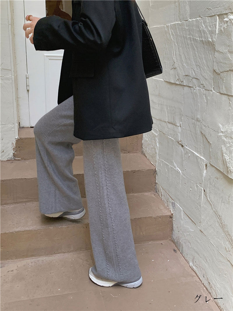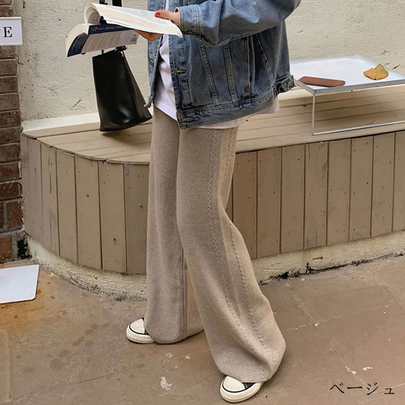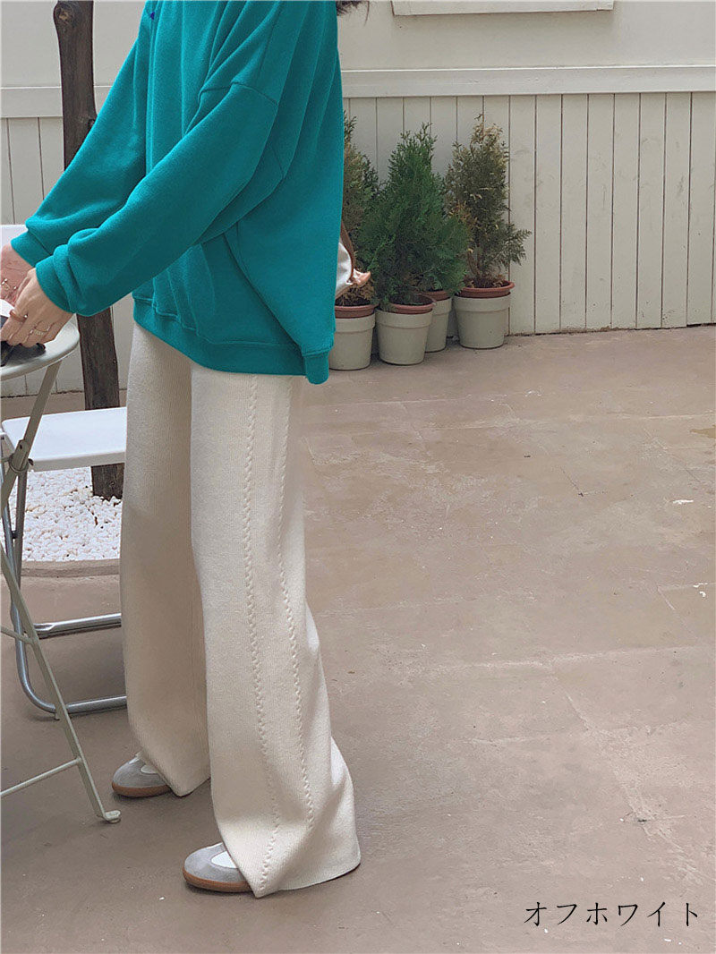 ニット ワイドパンツ レディース 秋冬 ボトムス パンツ 続々登場 グレー ブラック ベージュ オフホワイト 新色・コーヒー 新色・ダークグレー 新色・モカベージュ