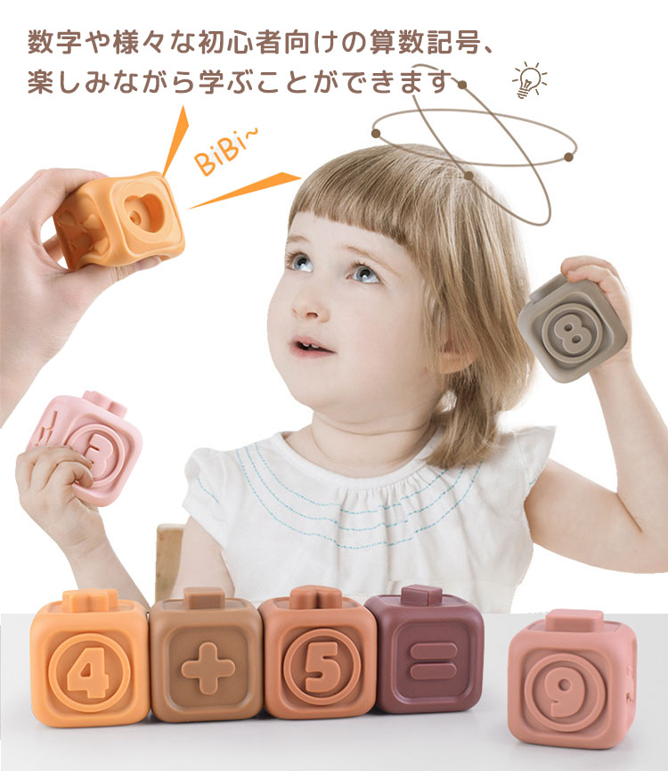 赤ちゃん おもちゃ 積み木 立体パズル 型合わせ カタチ遊び 知育玩具 色認識 数字認識 図形認識 シリコン製 出産祝い ソフトブロック 音の出る 男の子 女の子 早期開発 柔らかい