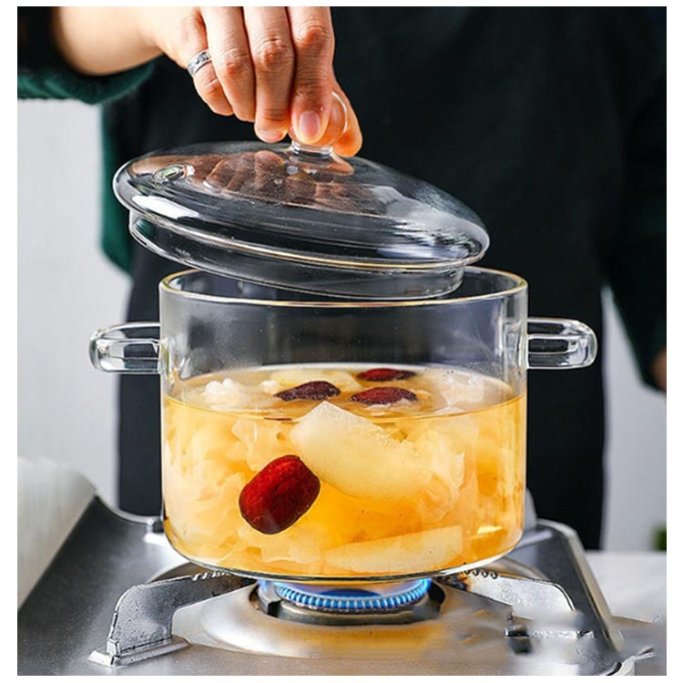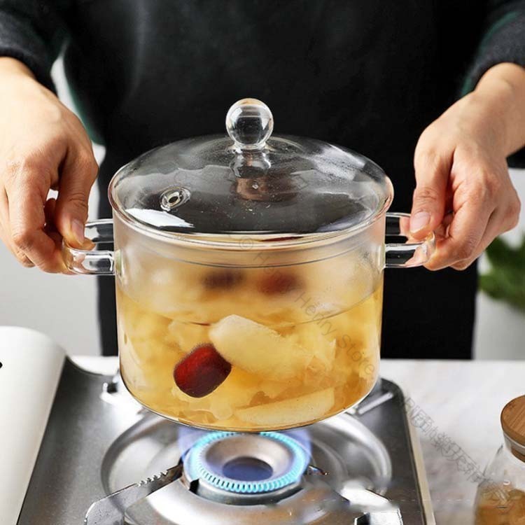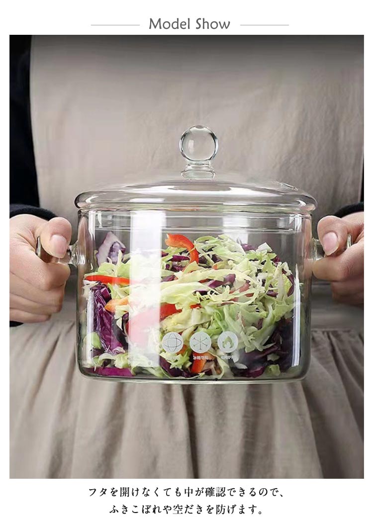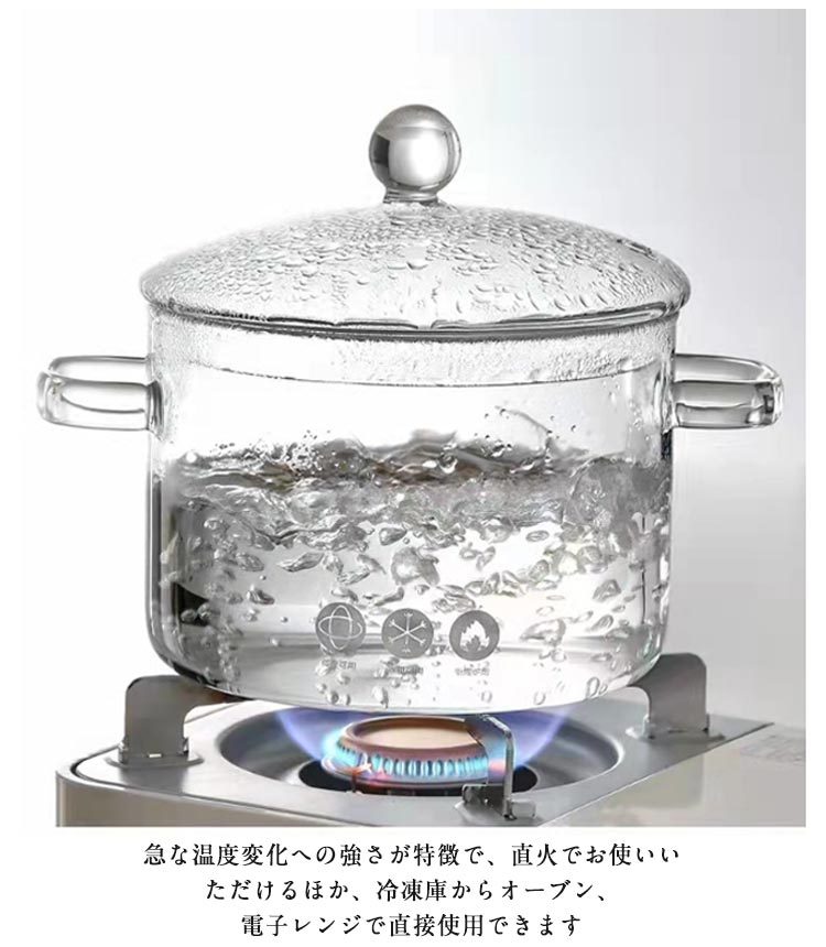 ガラスポット 透明ガラス鍋 直火対応 両手なべ ガラス蓋付き 大容量 離乳食調理に最適 スープ鍋 卓上鍋 キッチン雑貨 耐熱クリア調理器具 ミルクパン