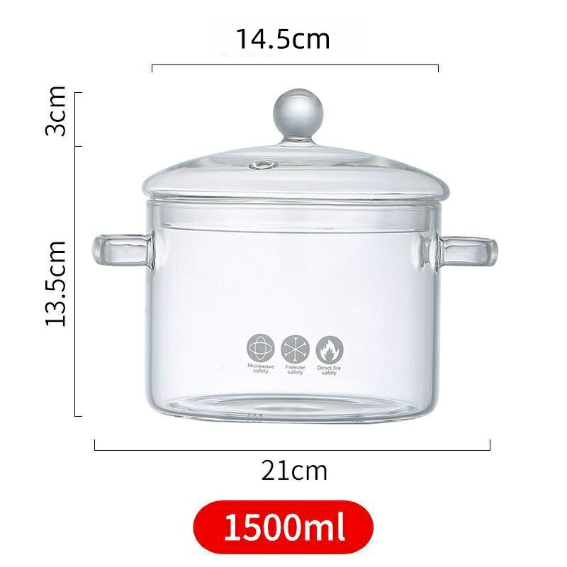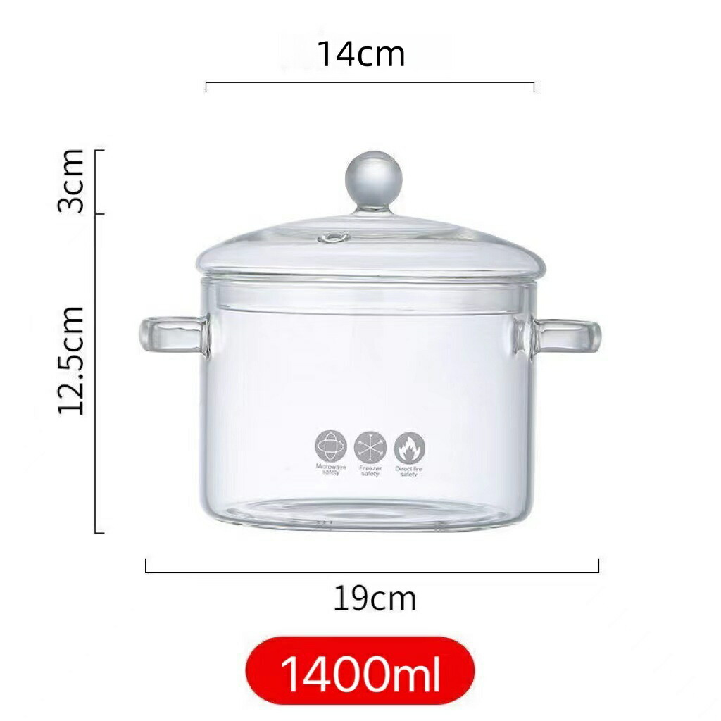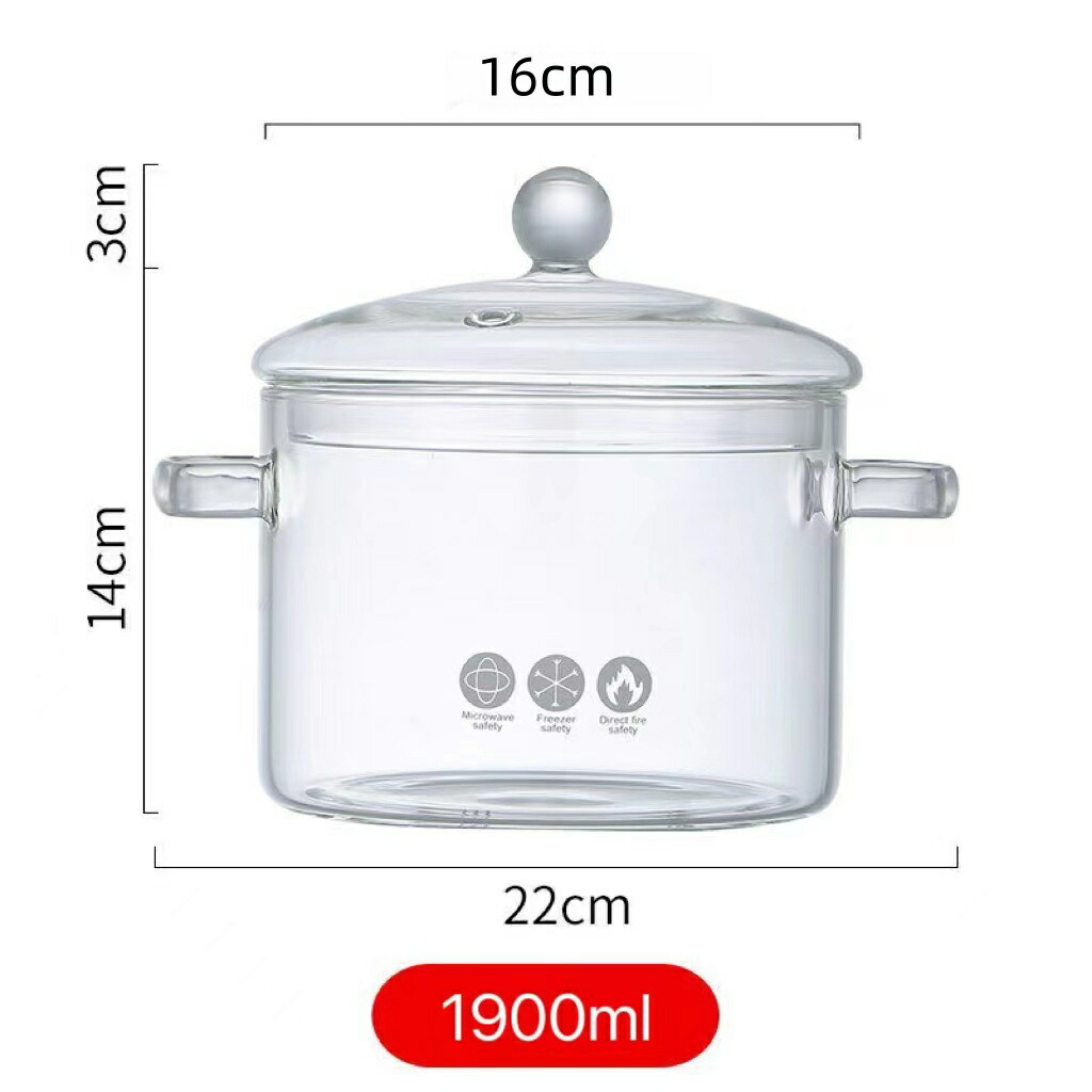 ガラスポット 透明ガラス鍋 直火対応 1400ML 1500ML 1900ML