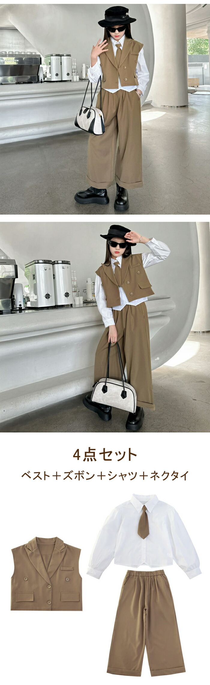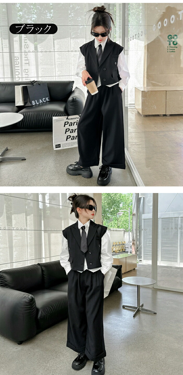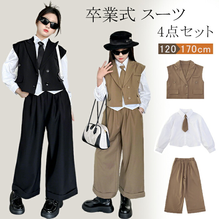 4点セット 卒業式 スーツ 女の子 フ キッズ ベビー マタニティ 新登場! カーキ シャツ+ネクタイ ブラック シャツ+ネクタイ カーキ ベスト+パンツ ブラック ベスト+パンツ カーキ 4点セット ブラック 4点セット 120cm 130cm 140cm 150cm 160cm 170cm