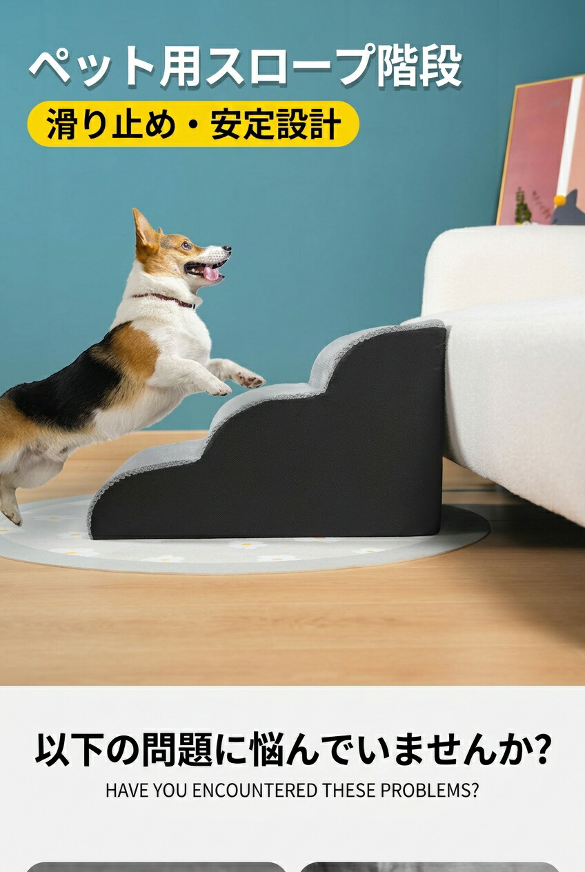 ドッグステップ 犬 階段 2段階 3段階 4段階 ペットステップ 踏み台 スロープ ソファー ペット ステップ カバー 洗濯OK 負担軽減 室内犬 犬階段 収納 衝撃吸収