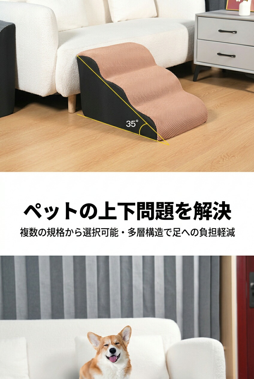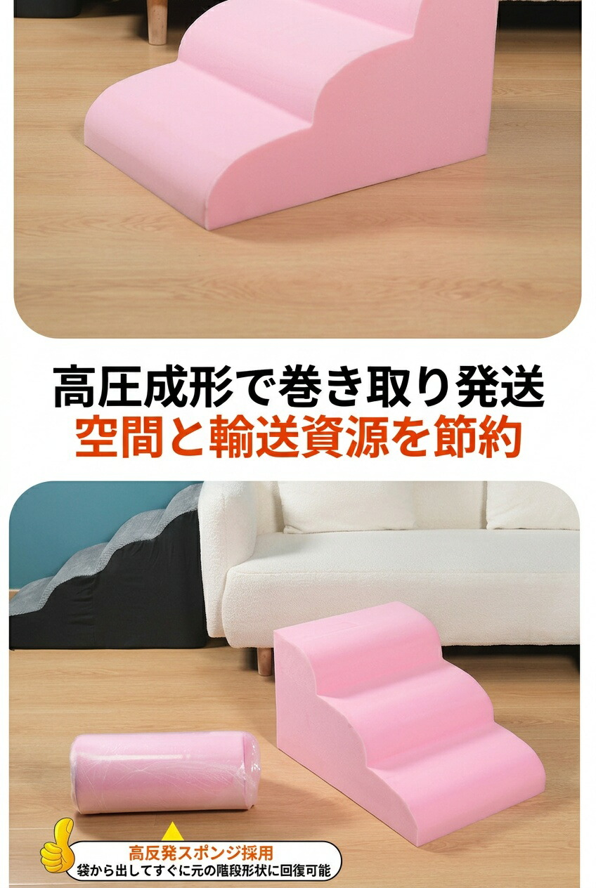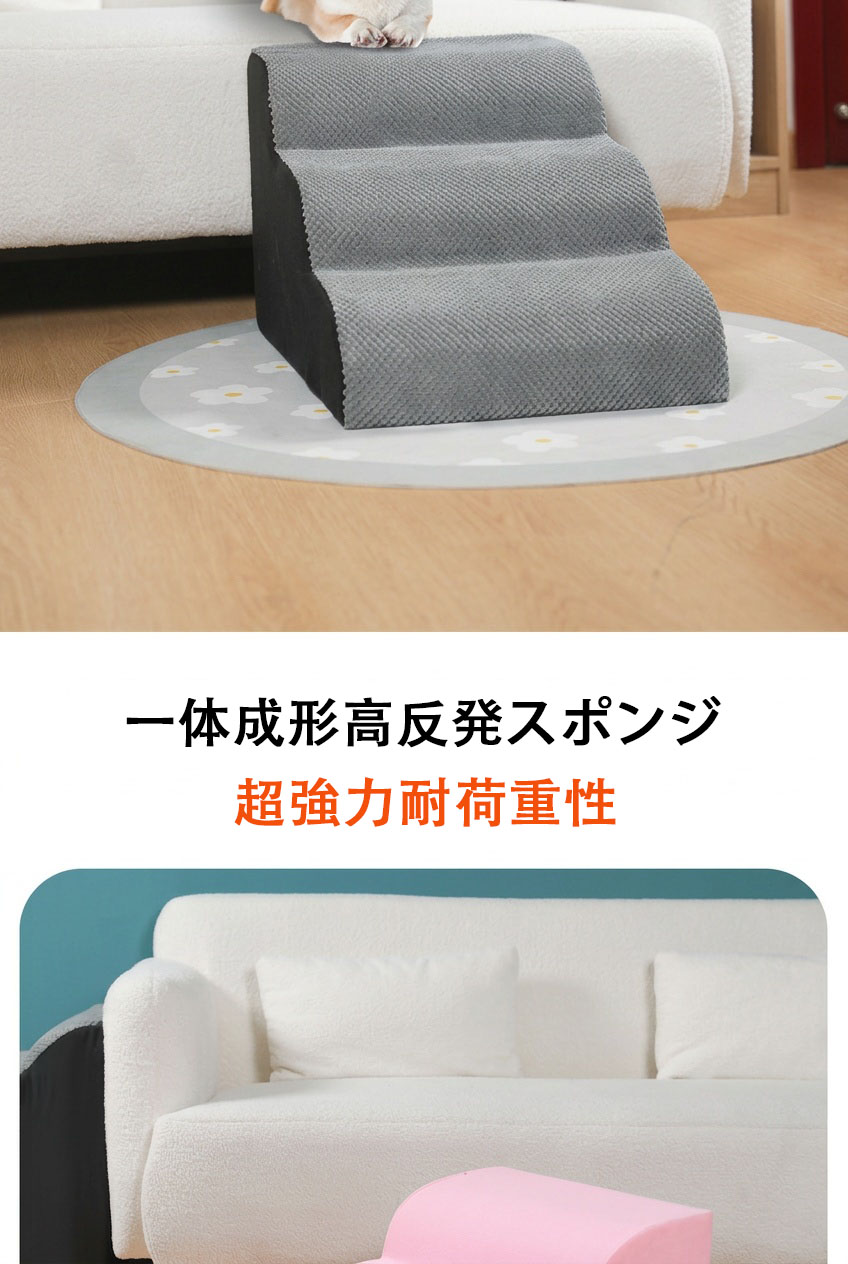 ペットステップは高弾力のスポンジを採用しており、はしごは快適で簡単に変形しません。