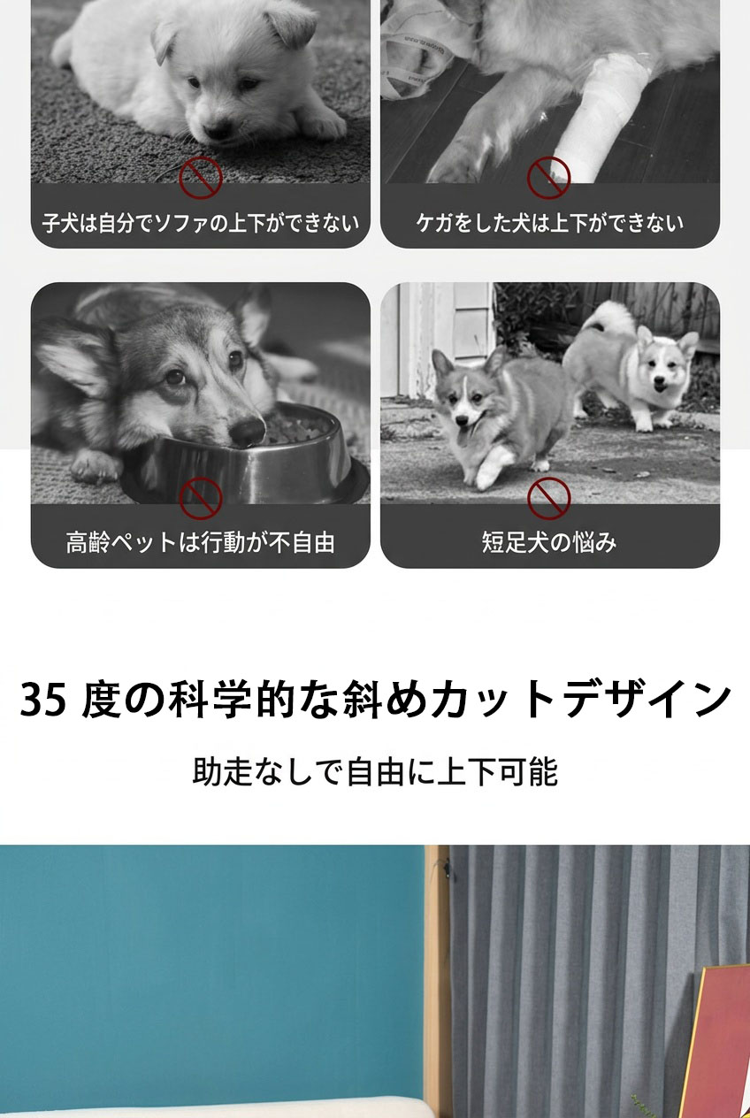 傾斜階段、小型犬 、太った犬は自由に上下することができ、腰の圧力を避け、ベッド、ソファー、出窓に寄りかかってペットが昇降できるようにし、通常は階段で寝ることができます。