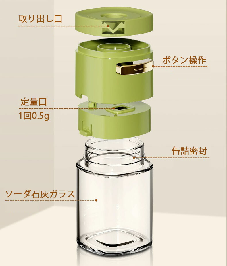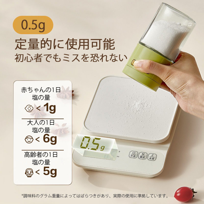 調味料入れ 調味料ケース 180ml 調味料ストッカー 0.5g定量的に使用可能 ボタン押下 使用簡単 収納容器 キッチン収納 コショウ 塩コショウ入れ ソルト 香辛料 分散 均等に塩をふる 胡椒粉