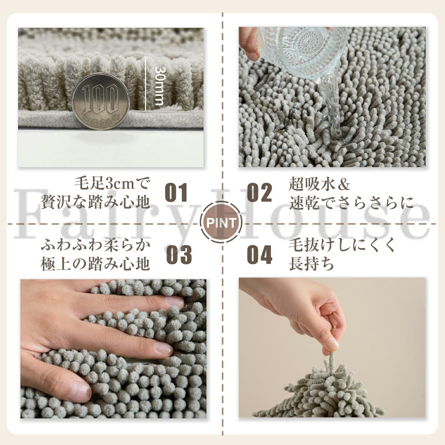 【瞬間吸水&速乾タイプ】 高密度マイクロファイバー素材を採用した速乾バスマット。お風呂上がりの水滴を“1秒”で吸収し、足裏をすぐにサラサラに保ちます。 お風呂用吸水マットに適した速乾性能で、ご家族での使用も快適。 洗濯可能で、お風呂マットとしてだけでなく、脱衣場・洗面所・キッチンなど幅広く活躍します。