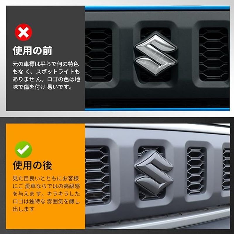新型スズキデザイン ジムニーJB64 JB74専用 Sエンブレム フロント用 3D立体標識 外装アクセサリー キズ防止 汚れ防止 フィット感 デザイン感 原車データ 取り付け簡単 フラットペ 高光沢度