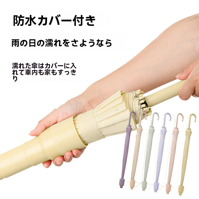 防水カバー付き 傘 ケース付き傘 男女兼可 レディース16本骨 傘カバー 長傘 晴雨兼用 ロングハンドル傘 エチケット傘 耐風傘 ワンタッチ開 超撥水 ジャンプ傘 梅雨対策 丈夫 大 台風対応