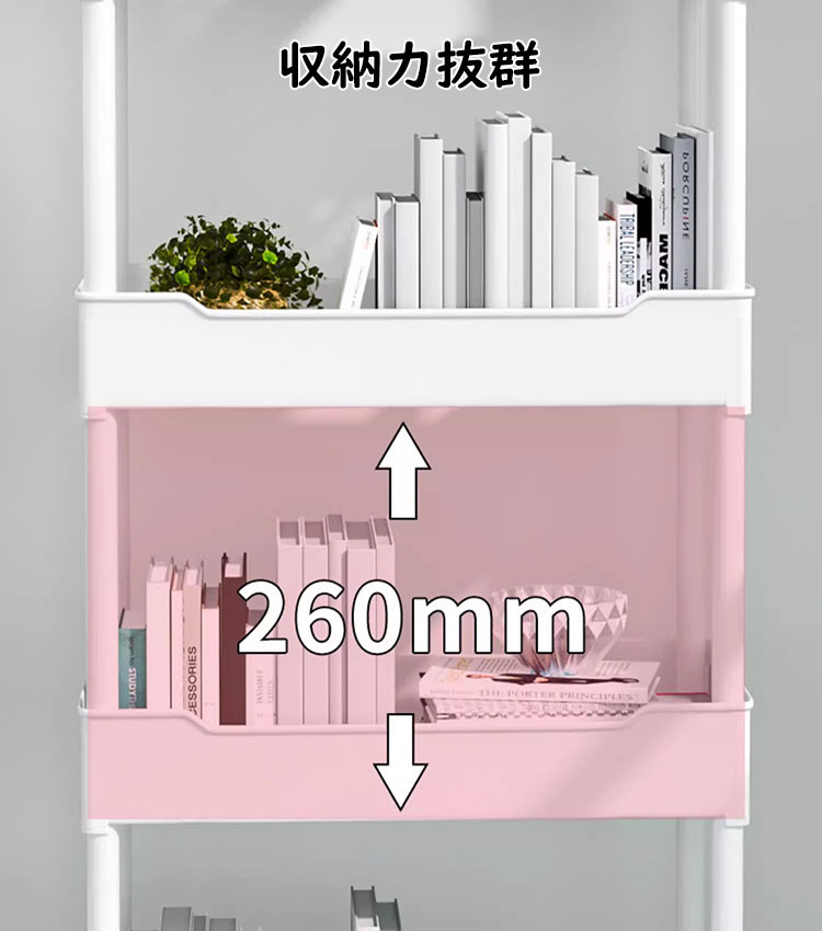 ※移動便利・頑丈:4つのキャスター付きなので360°自由に回転し、床を傷つけることなく手軽にそして静かに動かすことができます。平らでない表面でもぐらぐら揺れませんので安心に使えます。キャスターにはブレーキが付いています。軽くて移動しやすいのがメリットですが、安定性に欠けるのがデメリットなので、安定性を高めるために洗濯洗剤などの重いものを下の層に置くことをおすすめします。
