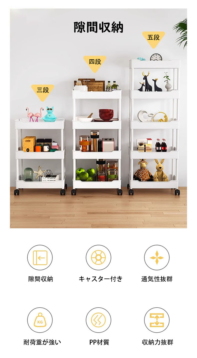 ※どんな場面でも活躍:細身設計で部屋の隙間を活用できます、スペースを節約し充分利用します。調味料、洗剤、バスルーム用品を楽に収納可能です。キッチン、コンロ横、洗面所、美容室などの隙間に適用。洗面台と壁の間、冷蔵庫横、玄関などでの使用に最適です。狭い人や空間を有効利用したい人はぜひお試してください。
