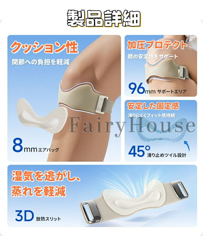 膝サポーターは、膝蓋骨をしっかりとサポートし、運動時の衝撃を効果的に吸収します。