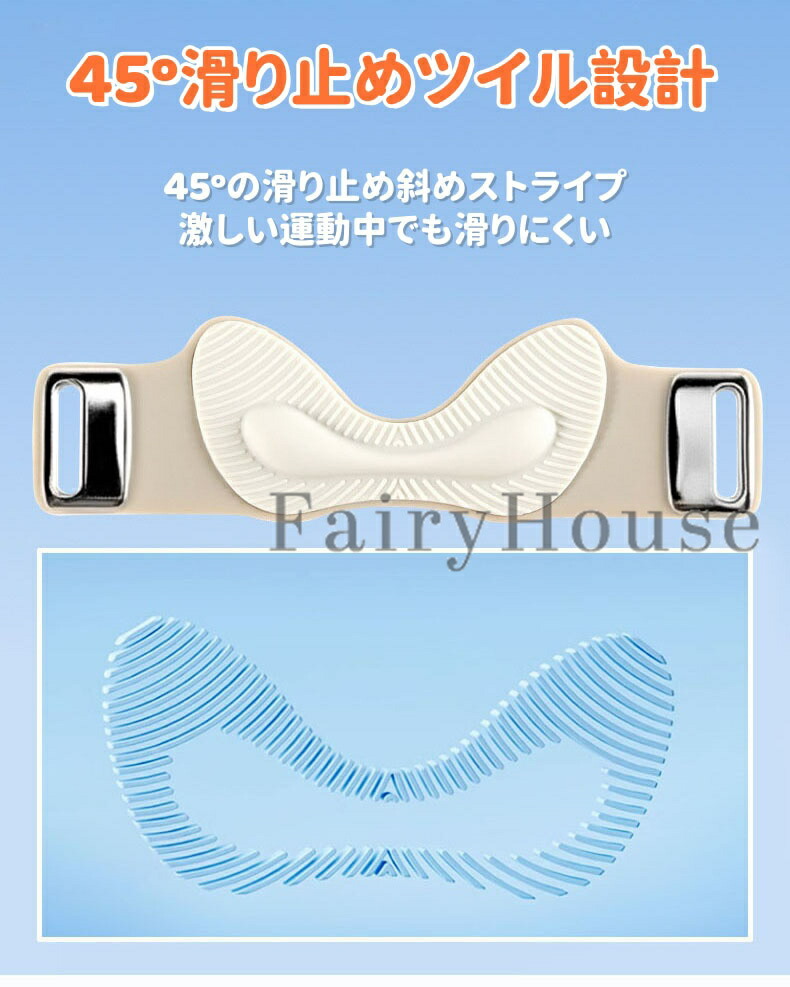 45度の滑り止めとV字サポートにより、しっかりとフィットし、動きやすさを確保します。