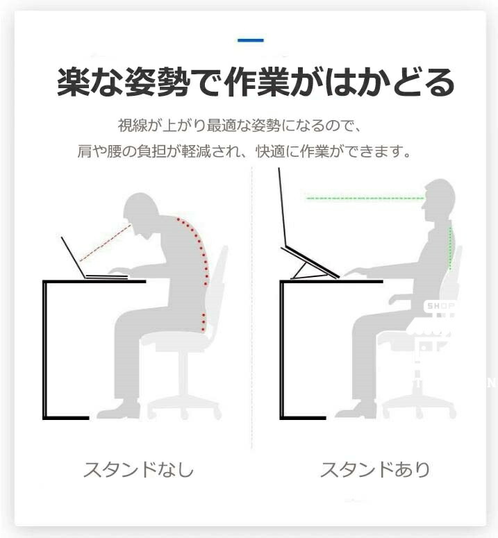 スタンドとPCとの接地面が少なく熱がこもりにくいので、パフォーマンスも向上します。