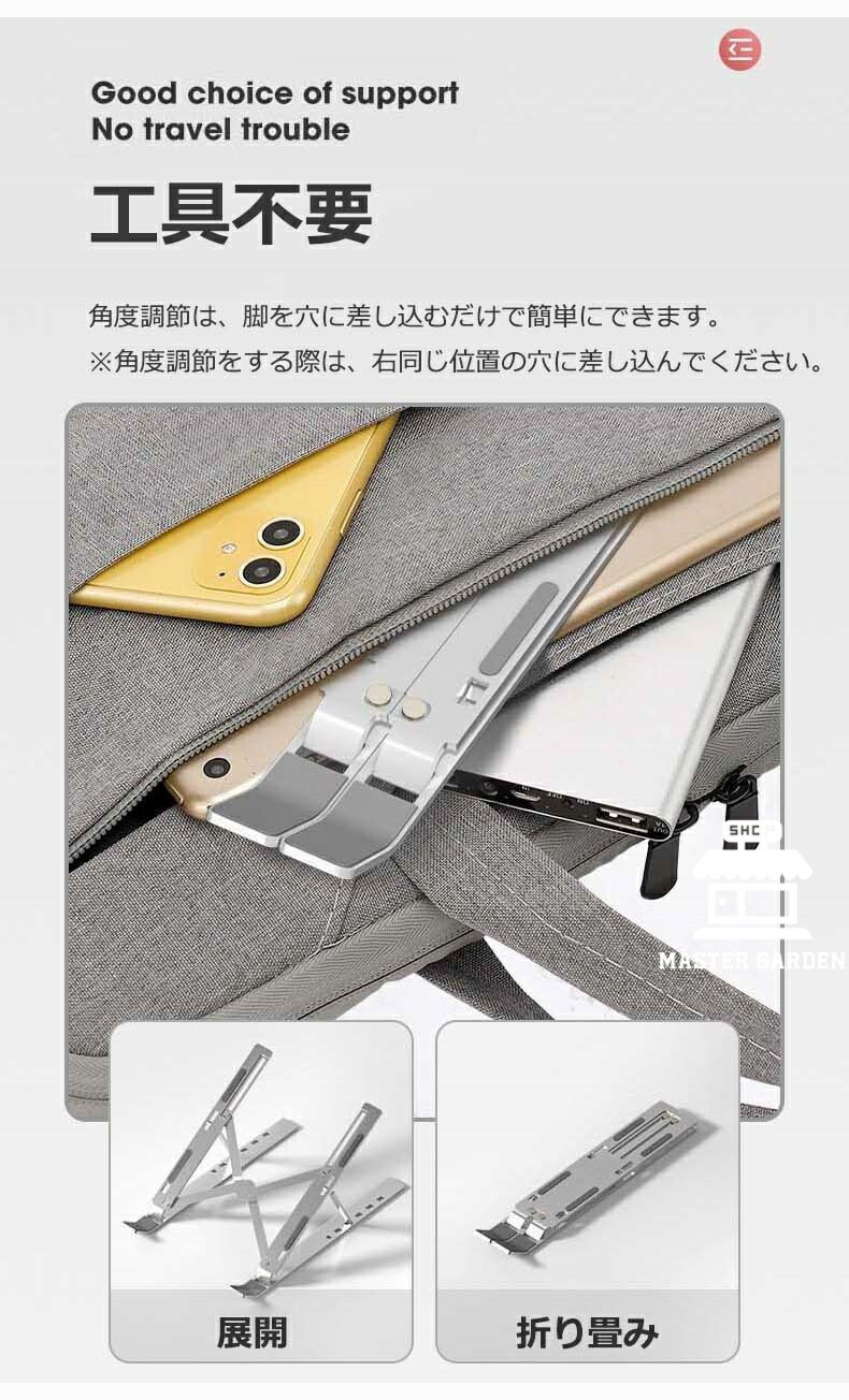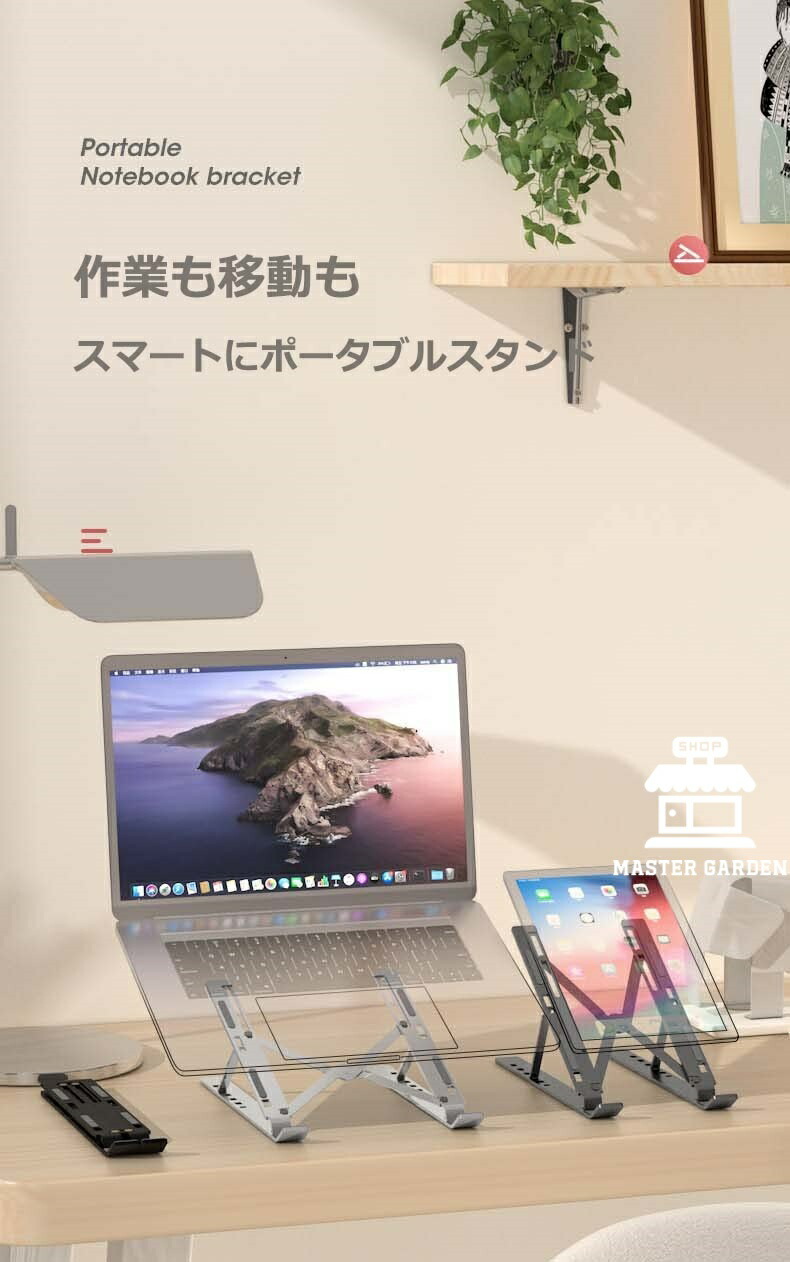 折りたためる、コンパクト、軽量設計、持ち運び可能便利なノートパソコンスタンド