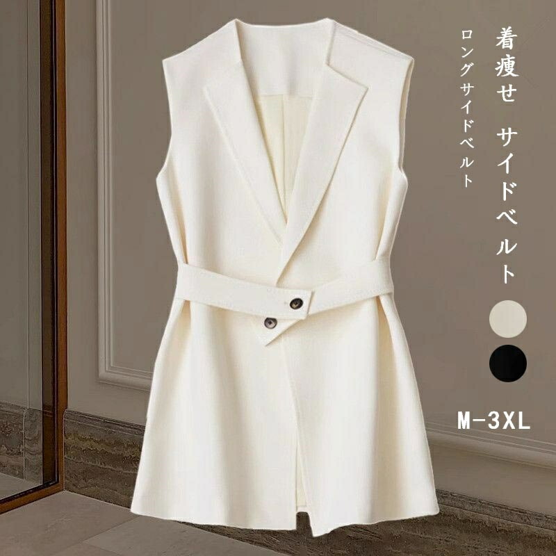ロングベスト レディース ノースリーブ レディースファッション 豊富 ベージュ ブラック M L XL 2XL 3XL