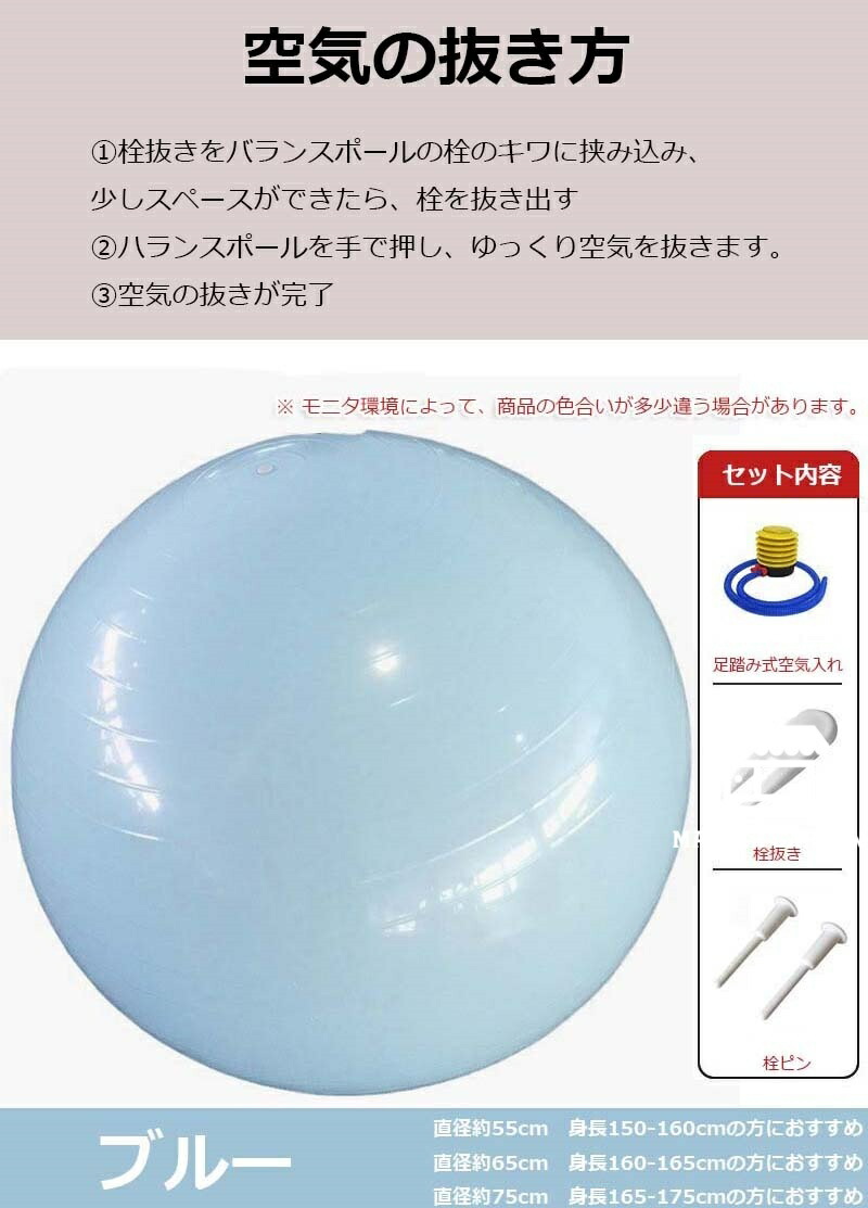 ヨガボール バランスボール 55 65 ブルー グリーン パープル ピンク 55cm 65cm 75cm