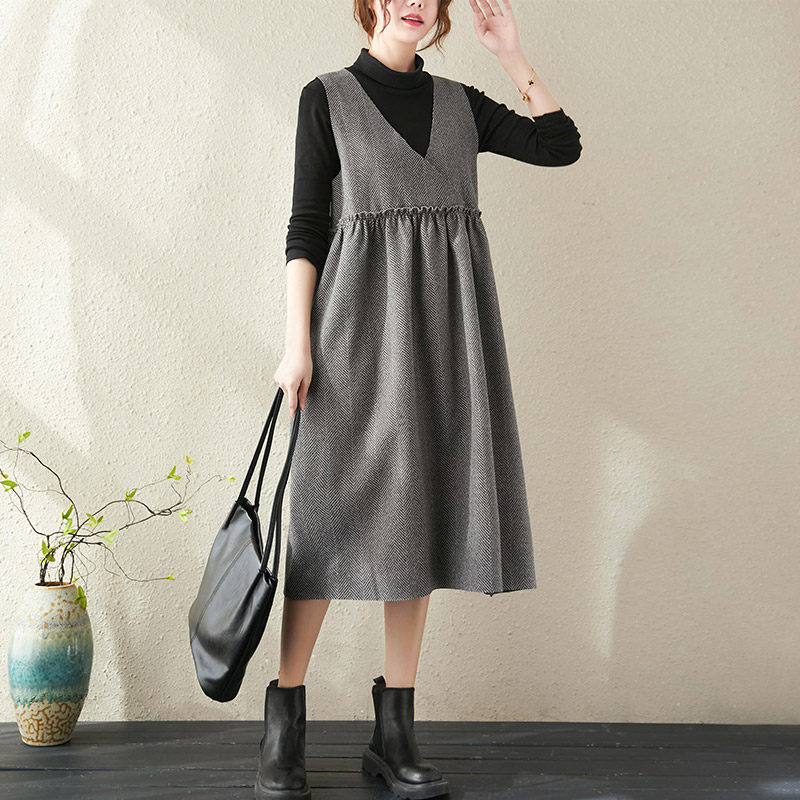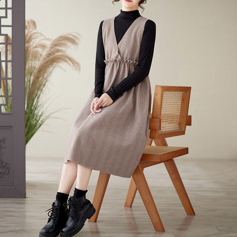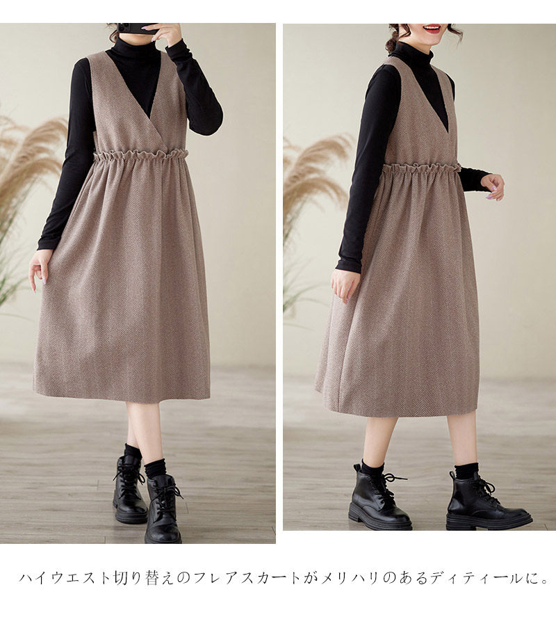 ロングワンピース 秋 冬 きれいめ ジ グレー ブラウン M L XL 2XL