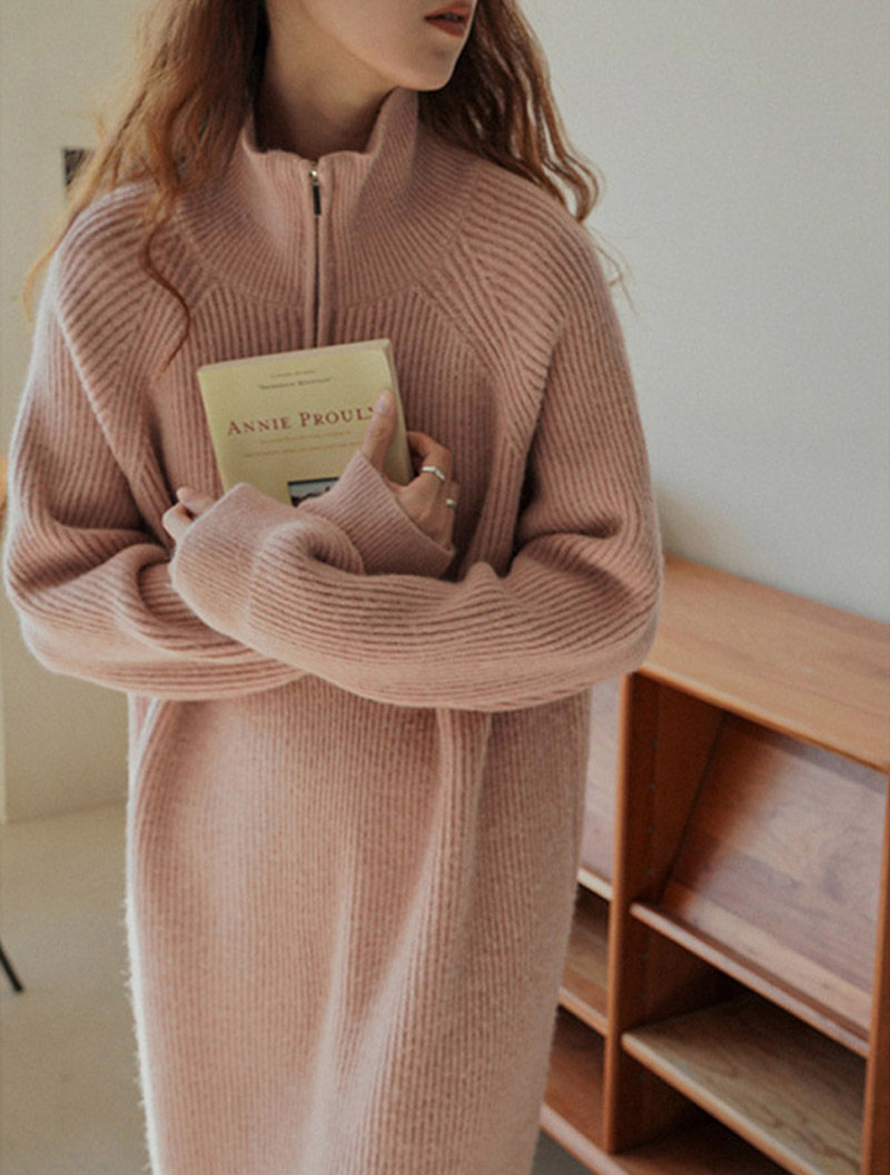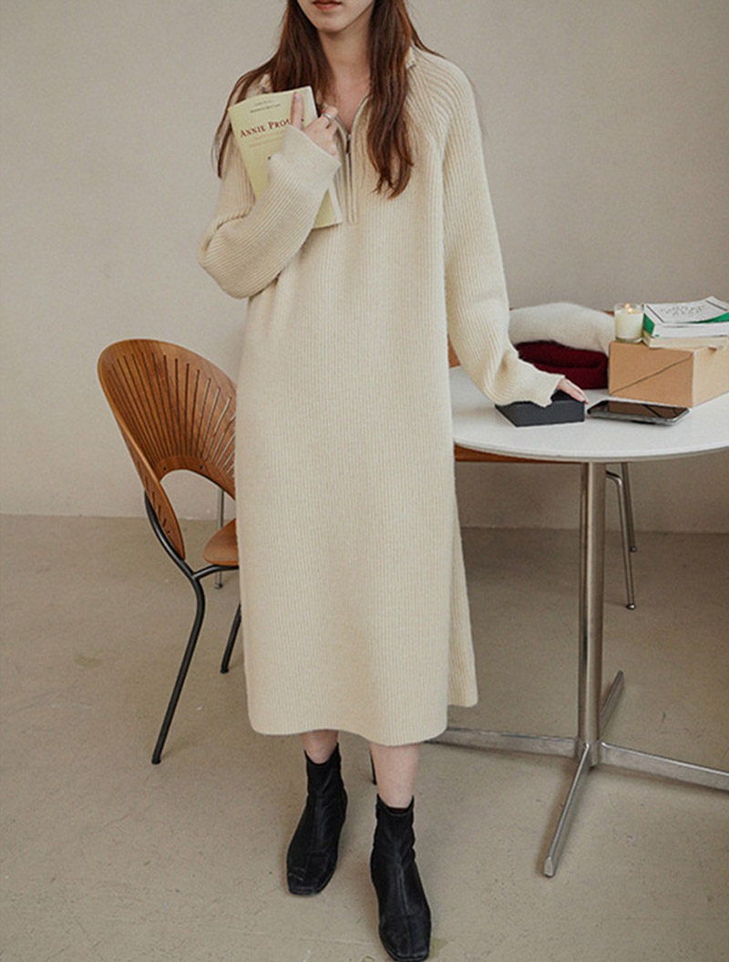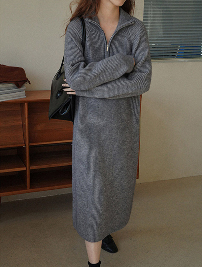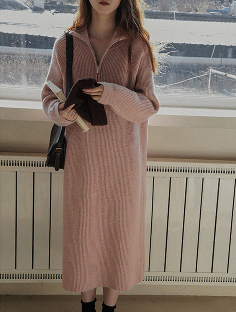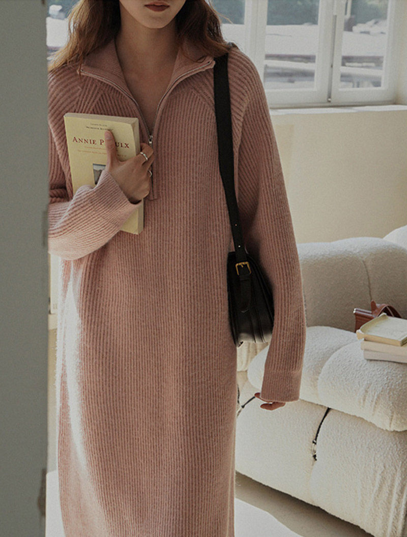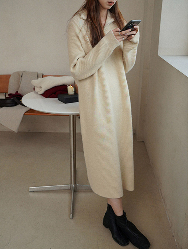 ロングワンピース 秋冬 長袖 ワンピー レディースファッション 続々登場 オフホワイト グレー ブラック ピンク