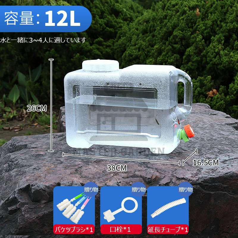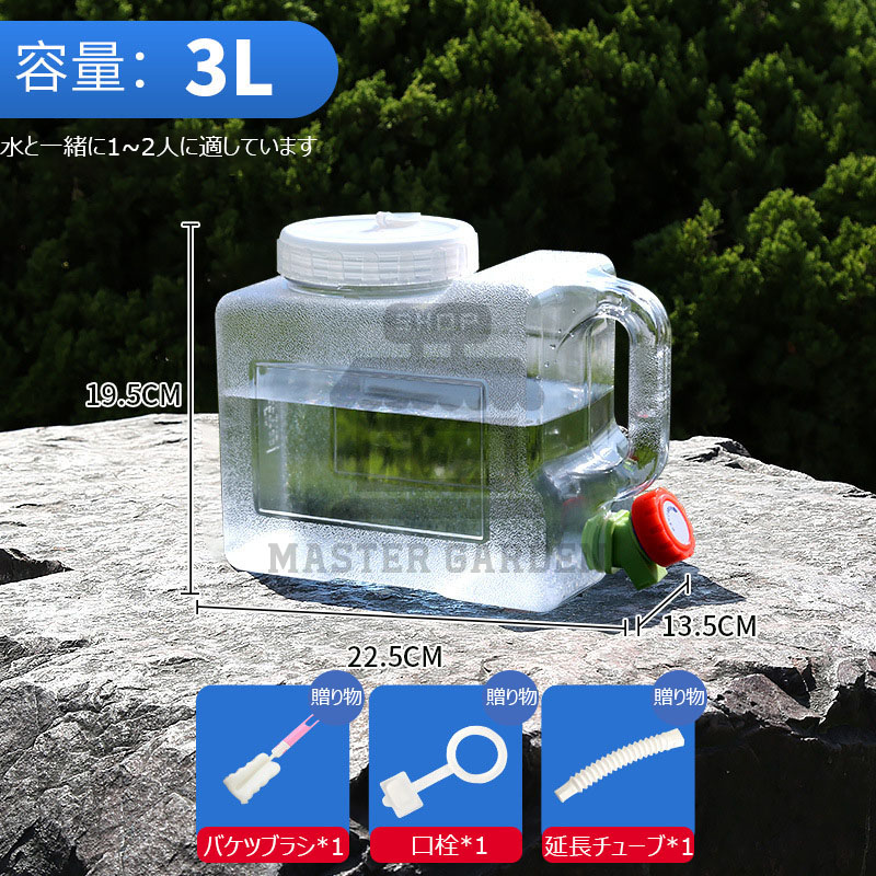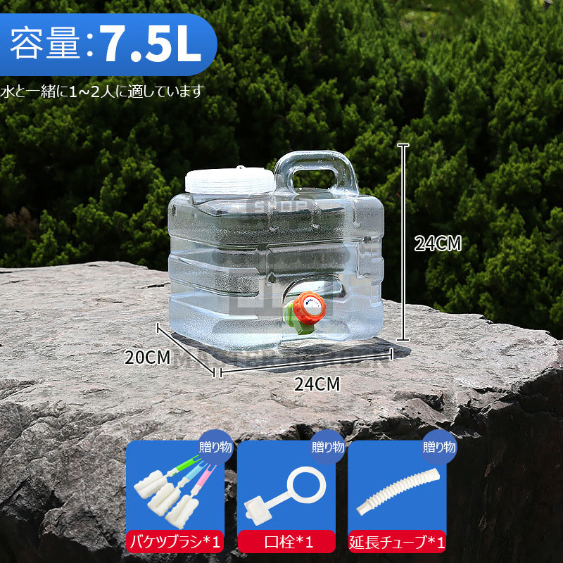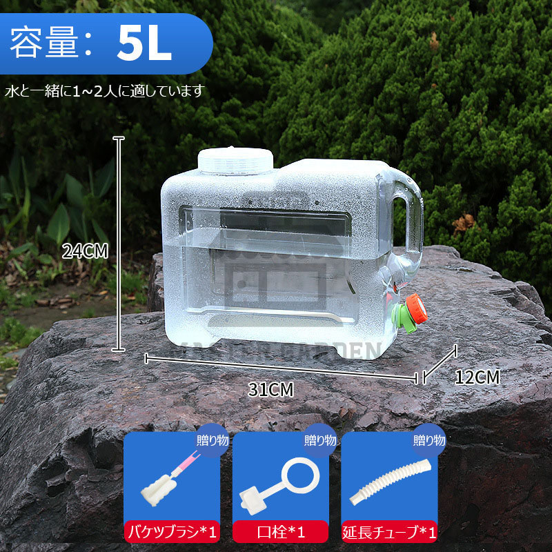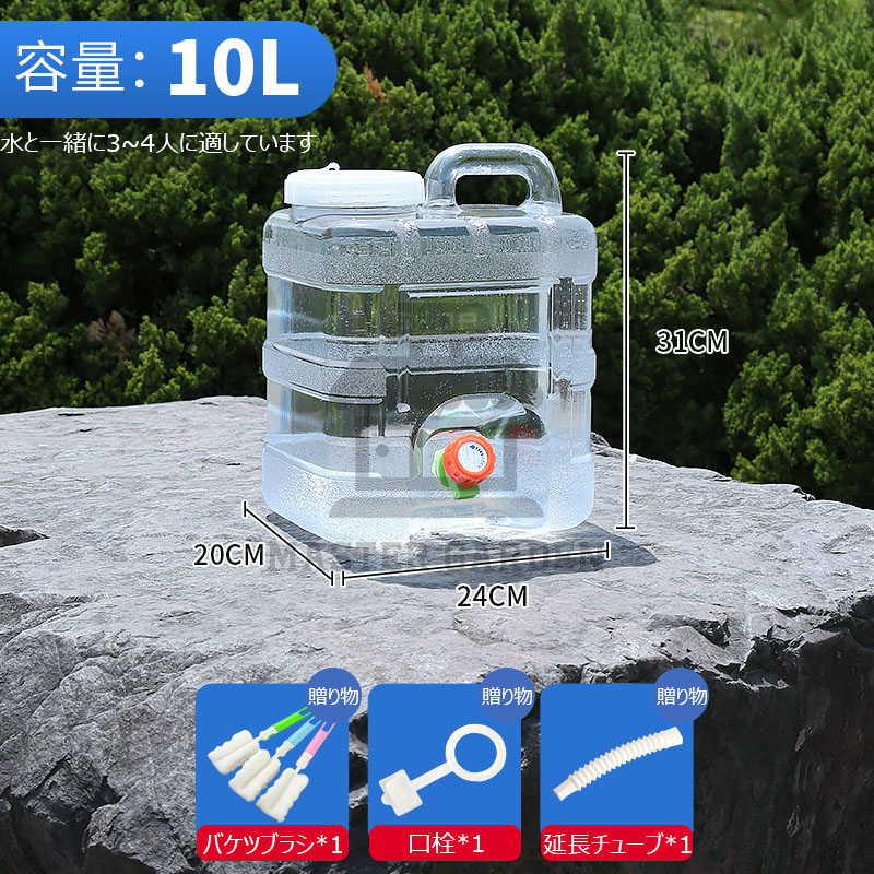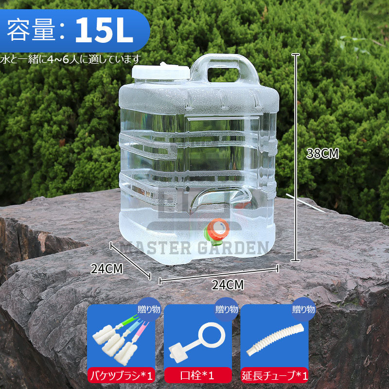 ウォータータンク 蛇口コック付き 3L 5L 7.5L 10L 12L 15L ポリタンク クリア タンク 防塵蓋 清潔ブラシ 携帯便利 ホース付