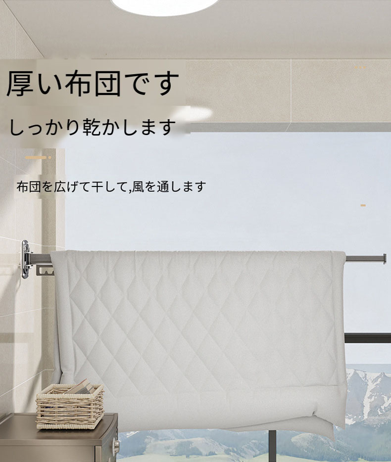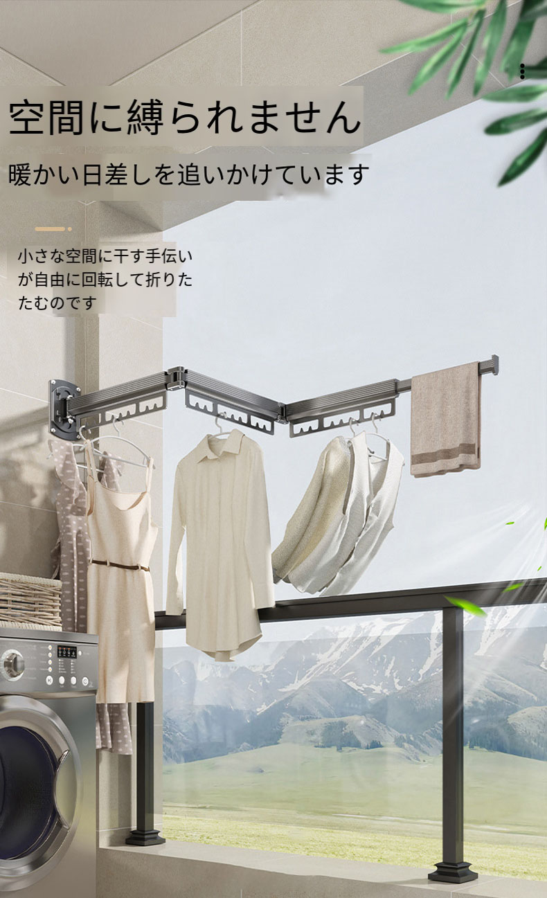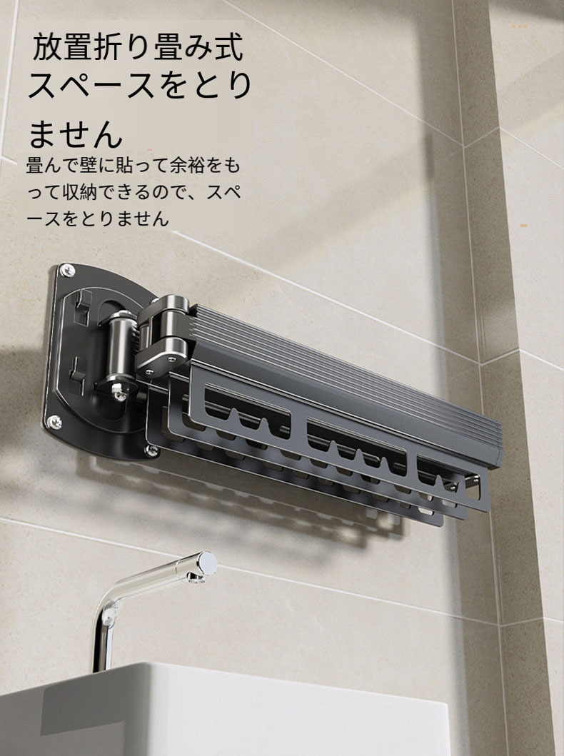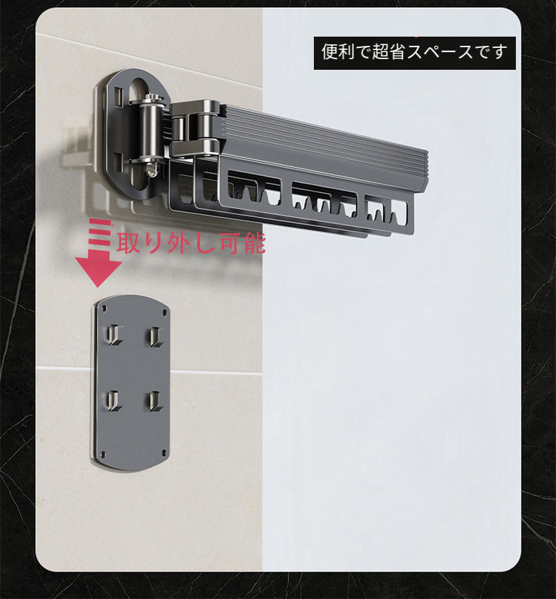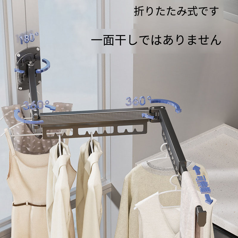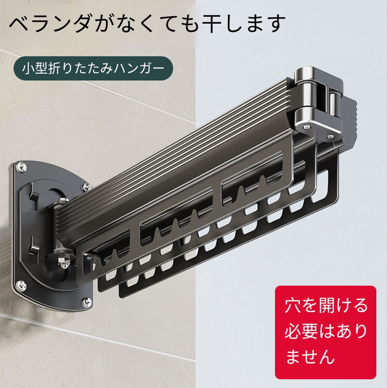 物干しスタンド伸縮式 壁掛け式 省スペース アルミ製 物干しラック 壁付け 物干し、隠し折りたたみハンガー、取り外し可能、折りたたみ 室内