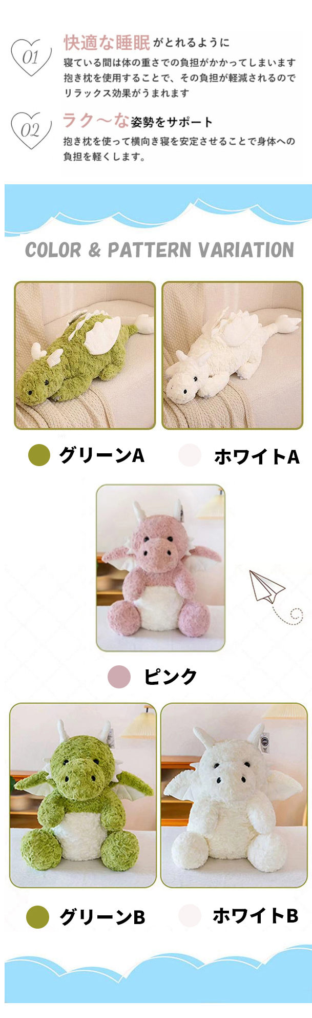 ファーストトイ ドラゴン ぬいぐるみ おもちゃ ベビー向けおもちゃ その他 新登場! ピンク グリーンA グリーンB ホワイトA ホワイトB 30cm 42cm 56cm 70cm 90cm 135cm