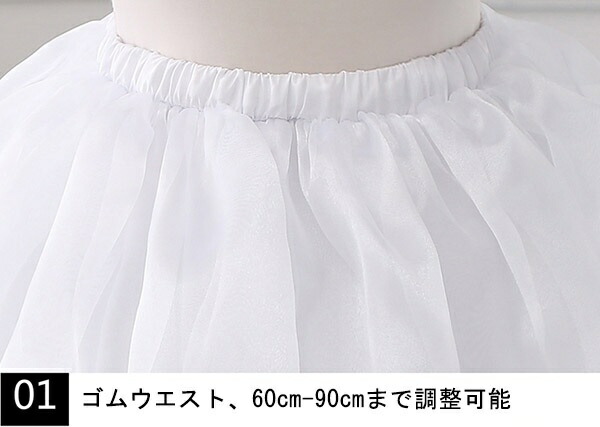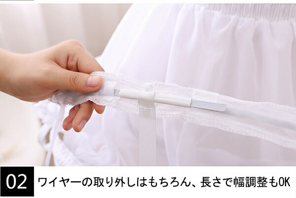 パニエ ロリータ 2本ワイヤー 調整可能 50cm 60cm 70cm ゴスロリ ソフトチュール Lolita ホワイト 白 コスチューム ボリューム ゴムウエスト 萌え萌え 柔らかい 骨あ 普段使い