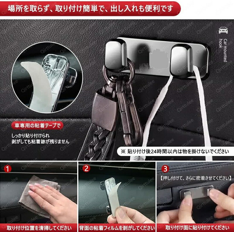 【高品質亜鉛合金素材&ダブルフックデザイン、さまざまな小物の収納に最適】本フックは高品質の亜鉛合金で作られており、強い引っ張り耐性と耐摩耗性を備えています。長期間の使用にも変形や破損を防ぎ、車内での使用に耐えることができます。亜鉛合金は腐食に強く、温度や湿度の変化にも影響を受けないため、車内での長期使用に適しており、美しさと実用性を保ちます。各フックには2つのフックがあり、手提げ袋、ショッピングバッグ、朝食バッグ、データケーブル、鍵など、さまざまな小物の収納に適しています。ダブルフックデザインは、特にデータケーブルなどの小物を絡まないように収納でき、車内を整理整頓し、物が整然と収納され、取り出しやすくします。
