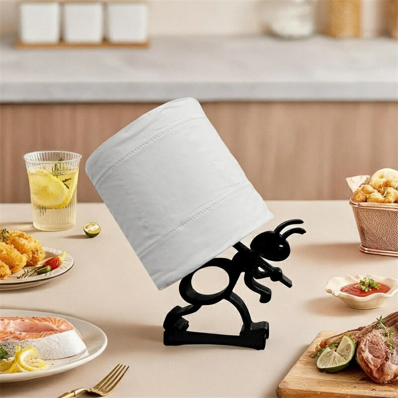 アリ型バスルーム装飾: 独特なアリをモチーフにしたフォルムで、このトイレットペーパーホルダーは機能的なアイテムとしてだけでなく、バスルームやパウダールームなどの様々な設定に自然に溶け込む装飾品としても優れています。その革新的で多目的なデザインは、空間の美的魅力を高め、視覚的な興味を引き立て、日常の生活環境に洗練された雰囲気を追加します。また、アリのデザインがユニークなアクセントとなり、どのようなインテリアスタイルにもマッチして、バスルームやリビングスペースの雰囲気を向上させます。