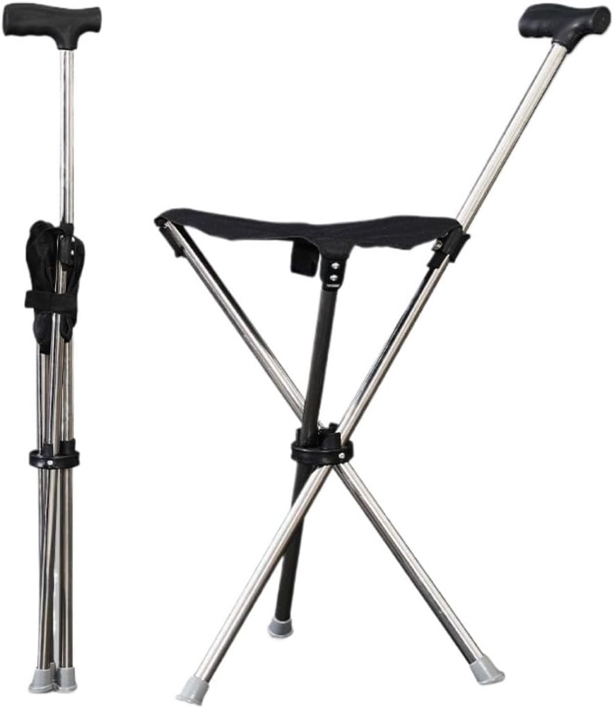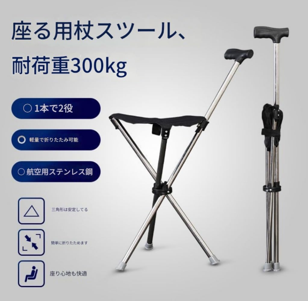 折りたたみ ステッキチェア アルミ製 登山杖 登山歩行支援ウォーキング シート付き折り畳み式ステッキ 滑り止め スティック旅行 遠足 スポーツ観戦 ゴルフ観戦 収納が便利 折り畳み杖 耐荷重13 釣り