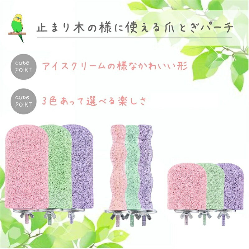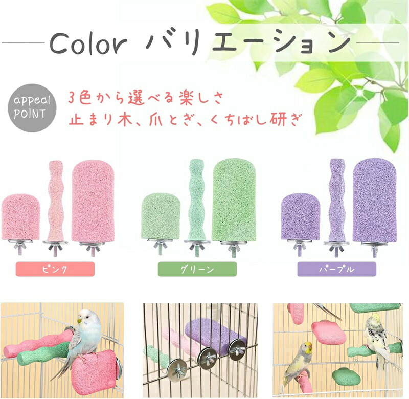 3個 4個セット インコ 止まり木 爪 グリーン ピンク パープル 3個セット 4個セット