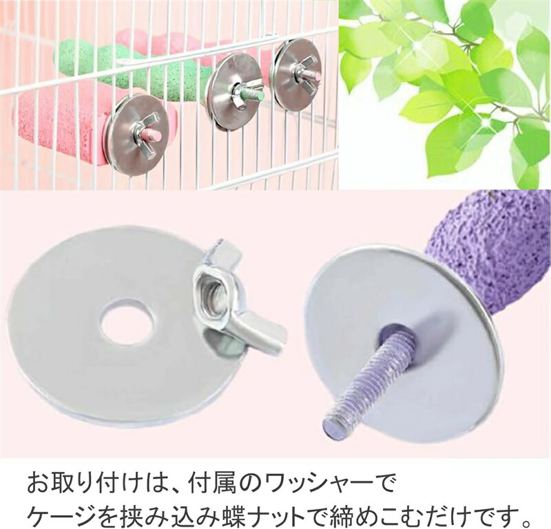 独自の粗面加工が、鳥さんの爪を優しく研ぎます。 定期的なお手入れの手間を減らし、鳥さんの快適さを保ちます。 付属のワッシャーで挟み込むことで、 ケージにしっかりと固定でき、グラつきにくい設計になっております。