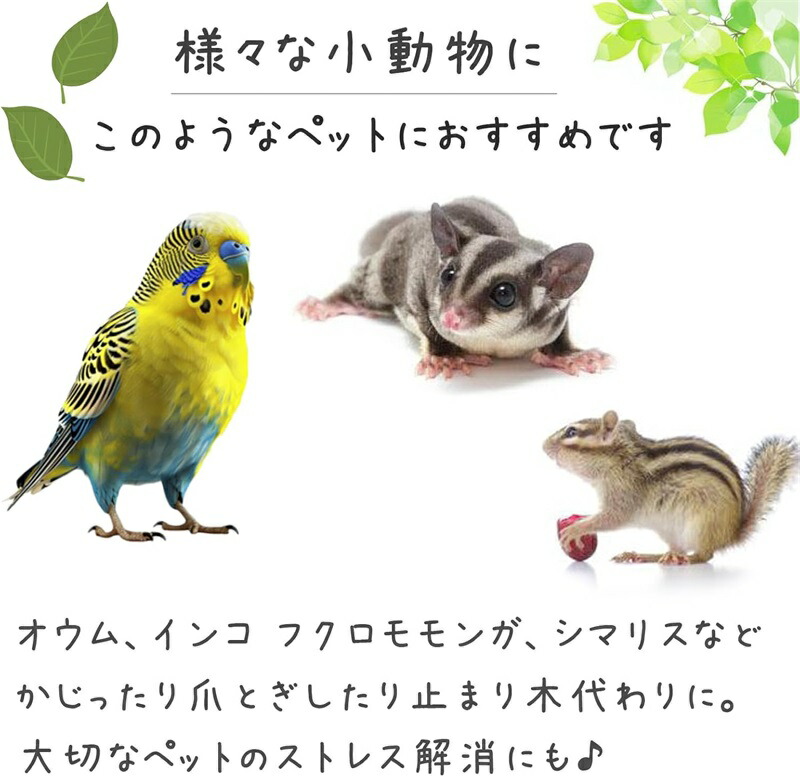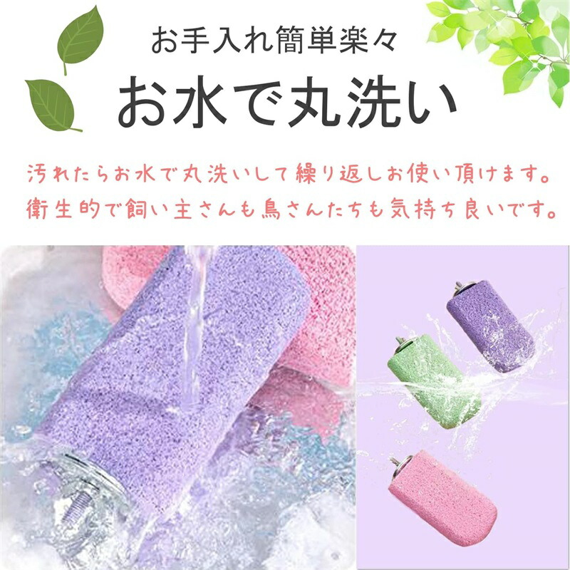 短いタイプから、太いもの、細いものまで、様々なニーズに対応する形状とサイズをご用意致しました。 小さい小型の小鳥にもご使用頂けますし、汚れても洗える素材なので、いつでも清潔に保てます。 カラフルな色合いはケージを明るく彩り、鳥さんにも喜んで頂けると思います。