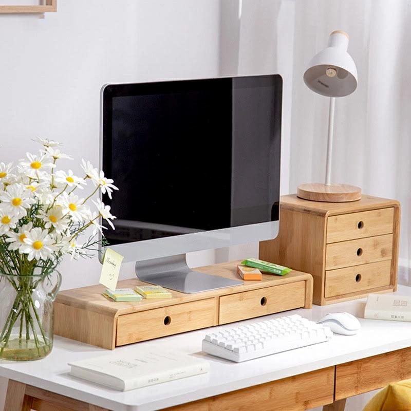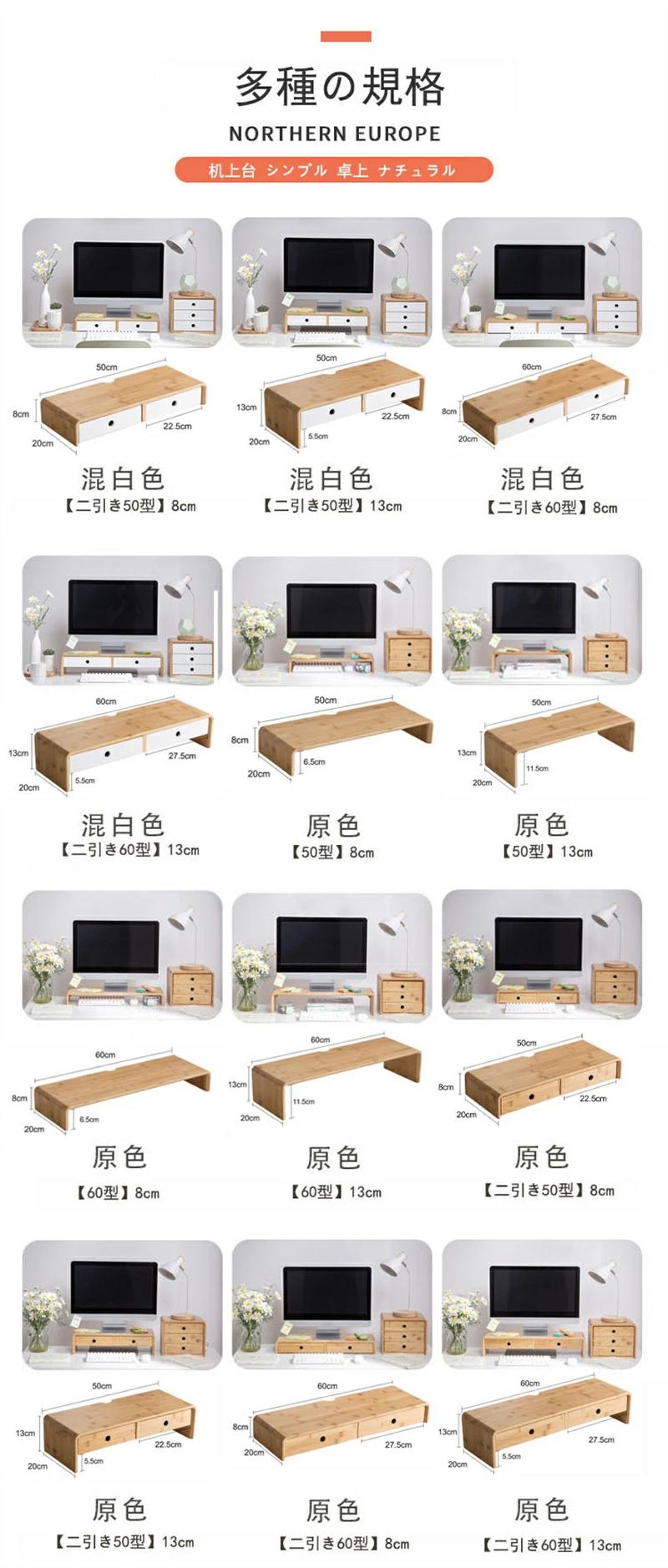 机上台 シンプル 卓上 ナチュラル モニターラック ディスプレイ台 竹製 PC台 引出し付き 引出無し 机上ラック モニタースタンド モニター台 液晶モニター台 デスク上スタンド 卓上ラック デスク上