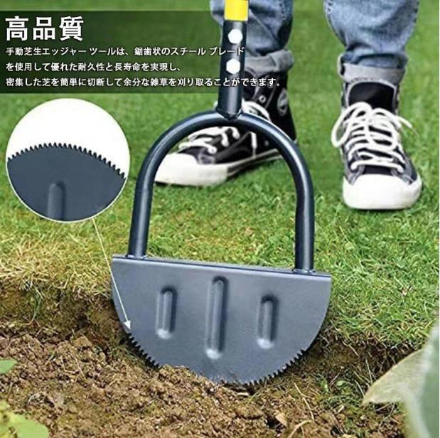 芝生カッター 芝生手入具 ターフカッター ステップ付き 全長108.5cm 芝刈りシャベル 芝刈り機 雑草除去 エッジャー芝生ツール 園芸 草地、歩道や庭の縁取りに最適 カッター ガーデニ 便利ツール