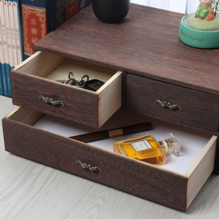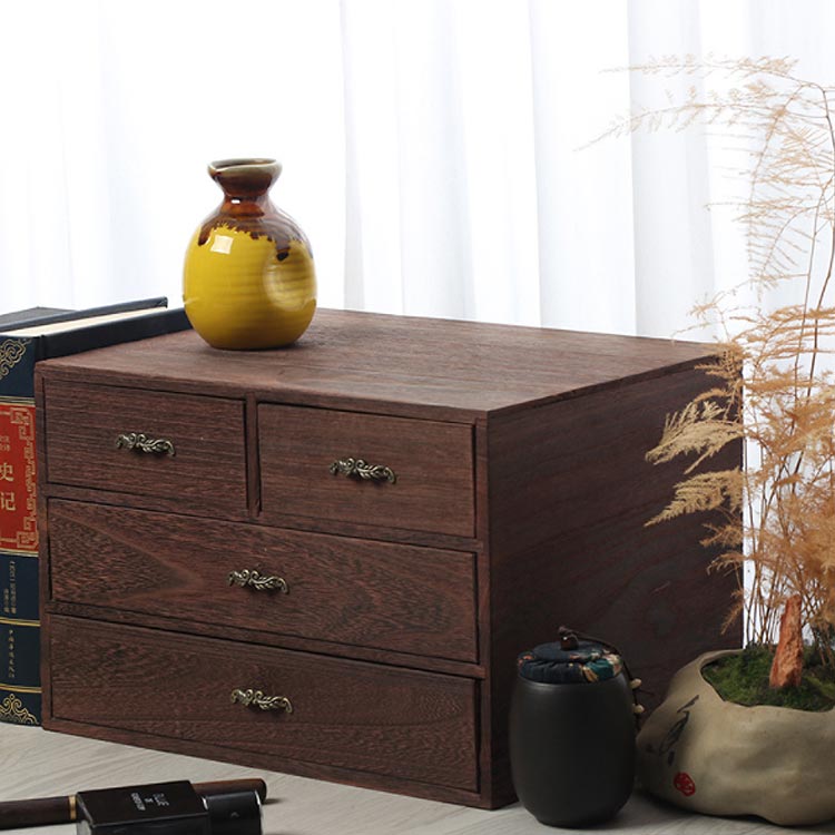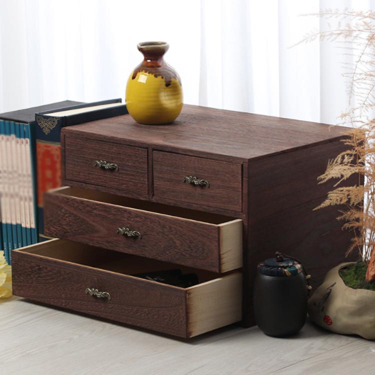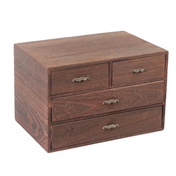 調湿効果もあるモダンな天然木桐材を使って、木目が美しい天然木を使った卓上引き出し収納ケース。
