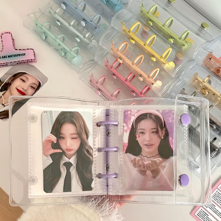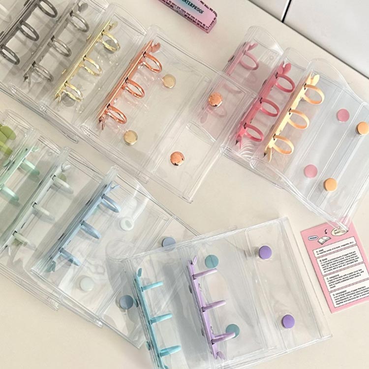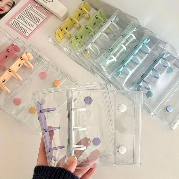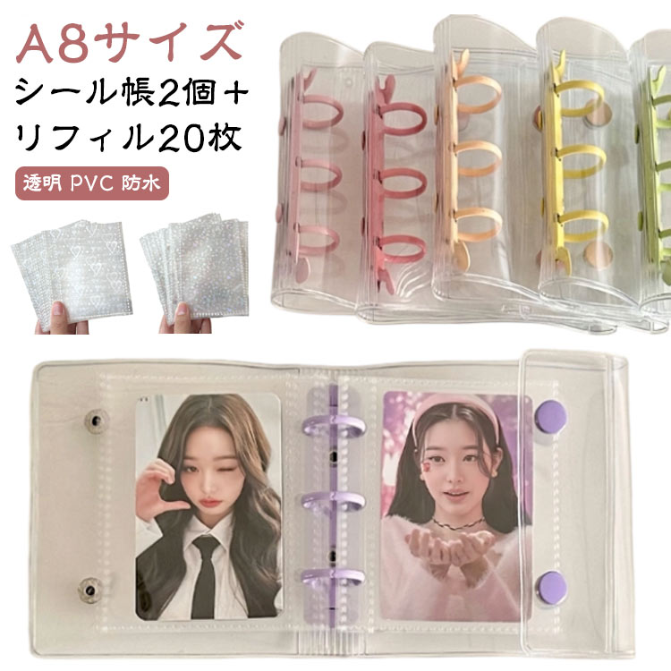 シール帳 バインダー A8サイズ 推し活 PVC クリア シールバインダー 透明 手帳 ダブルボタンデザイン 推し活グッズ 防水 シール カラフル