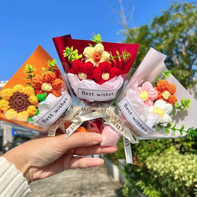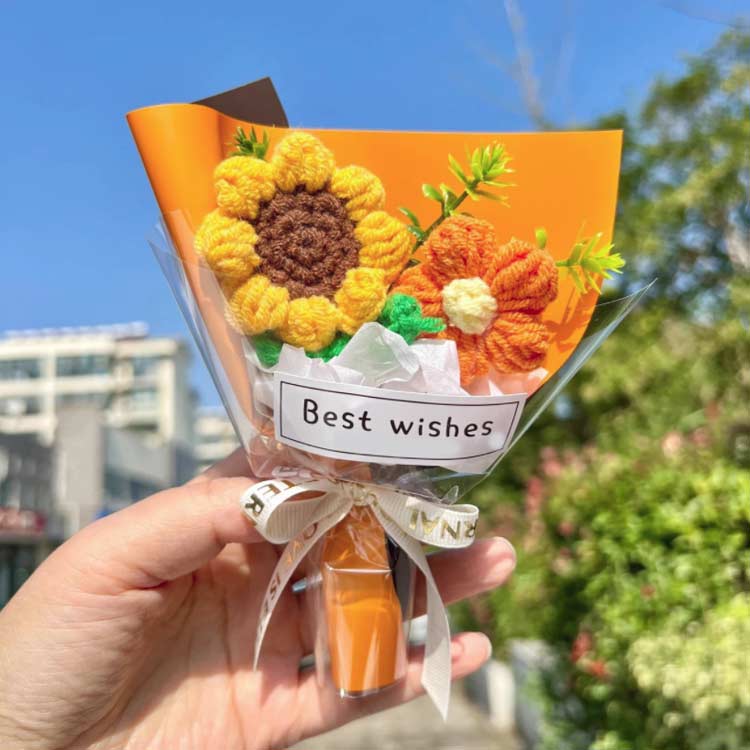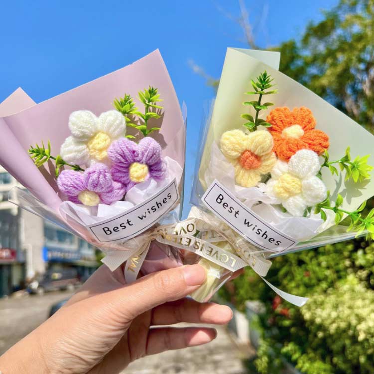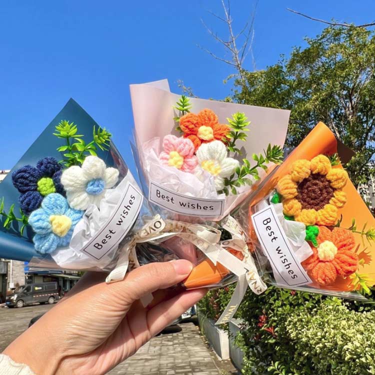 ニットブーケ ミニサイズ ニットフラワー 手作り花 かぎ針編み ミニブーケ 母の日 ギフト 毛糸 カラフル 可愛い 手つくり 子供 花束 造花 飾り プレゼント 記念日 成人式 卒業式 バレ 敬老の日
